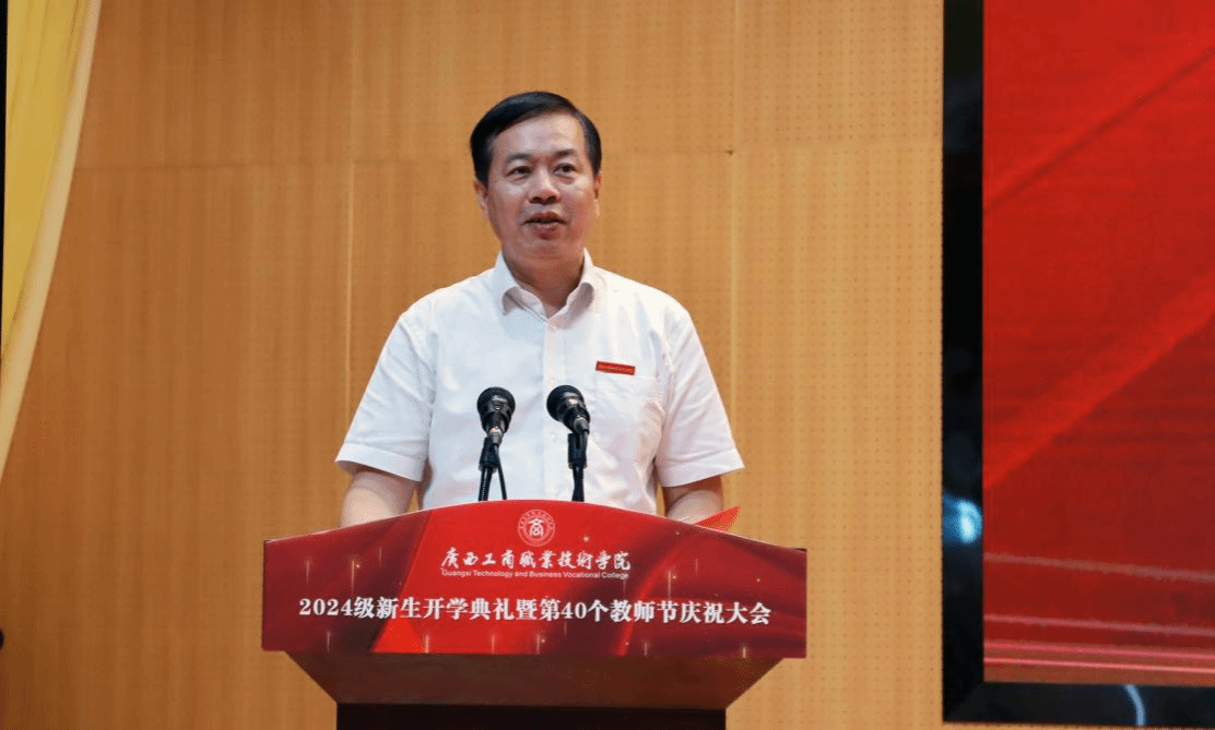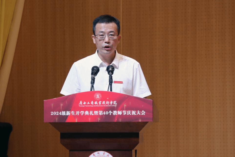 學(xué)校黨委副書記、校長劉進(jìn)在大會上致辭,向8300多名2024級新生表示熱烈的歡迎,向全體教職工致以節(jié)日的問候和崇高的敬意。他勉勵同學(xué)們一要堅定理想信念,爭做信念如磐的有志青年,勇?lián)鐣?zé)任,做信仰堅定的接班人;二要勤奮學(xué)習(xí),爭做本領(lǐng)過硬的有識青年,不斷拓寬知識領(lǐng)域,積極參加豐富多彩的校園活動,努力成為學(xué)有所長、業(yè)有所專、技有所精的廣商院人;三要敢于開拓創(chuàng)新,爭做篤行實(shí)干的有為青年,勇于迎接新挑戰(zhàn),善于開辟新領(lǐng)域,心有大我,在協(xié)作奮進(jìn)中彰顯作為。
