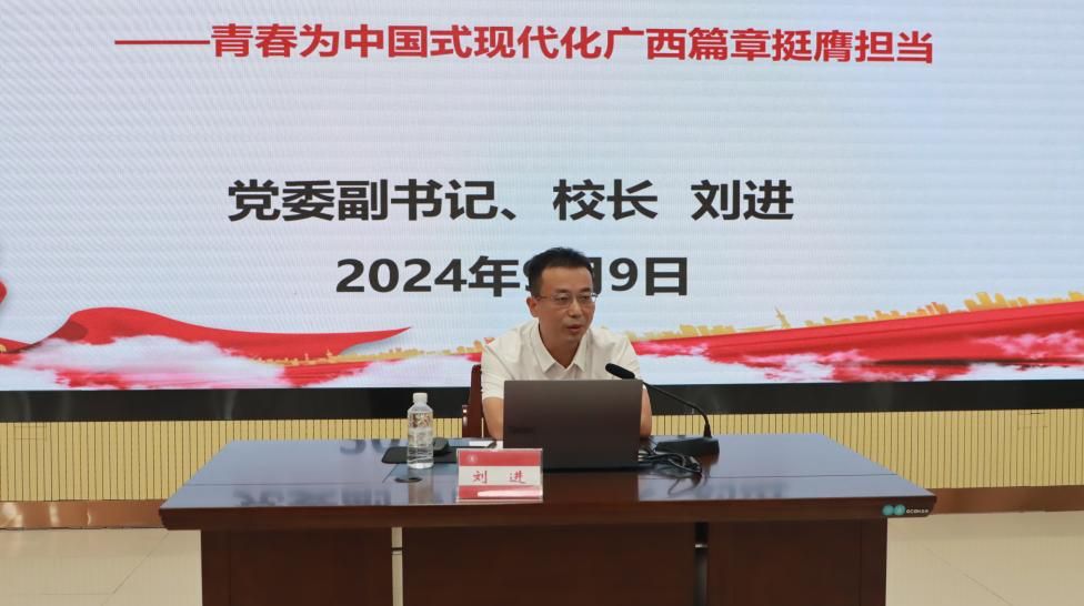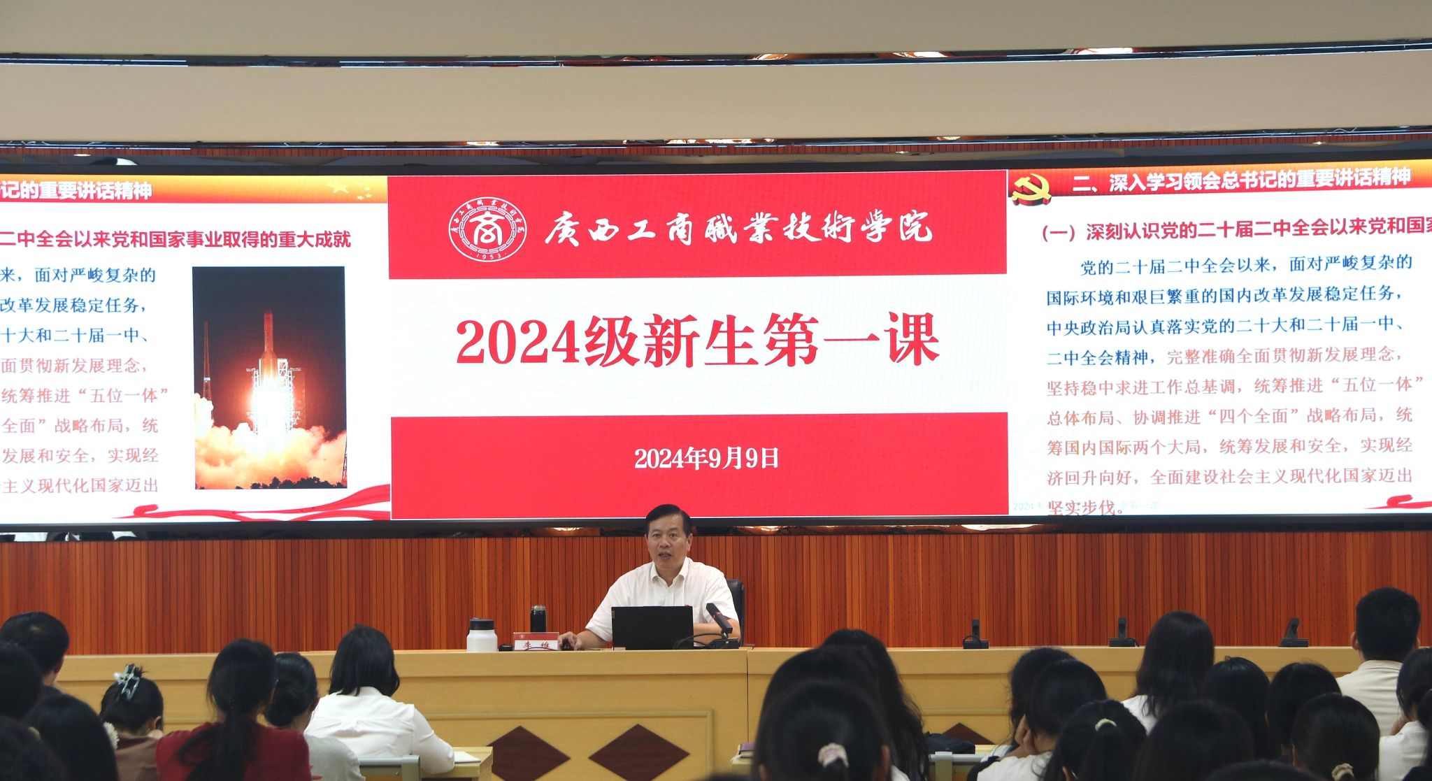 9月9日,學(xué)校開展2024級新生第一課學(xué)習(xí)教育活動,引導(dǎo)新生賡續(xù)紅色血脈,切實(shí)擔(dān)當(dāng)起推動中華民族偉大復(fù)興的歷史使命。學(xué)校黨委書記李維、校長劉進(jìn)、黨委副書記安仲文分別在鵬飛校區(qū)、武鳴校區(qū)、中堯校區(qū)為我校2024級新生講授“開學(xué)第一課”。此次活動以“深入學(xué)習(xí)貫徹黨的二十屆三中全會精神”為主題,采取線下講授、線上直播結(jié)合的形式展開。