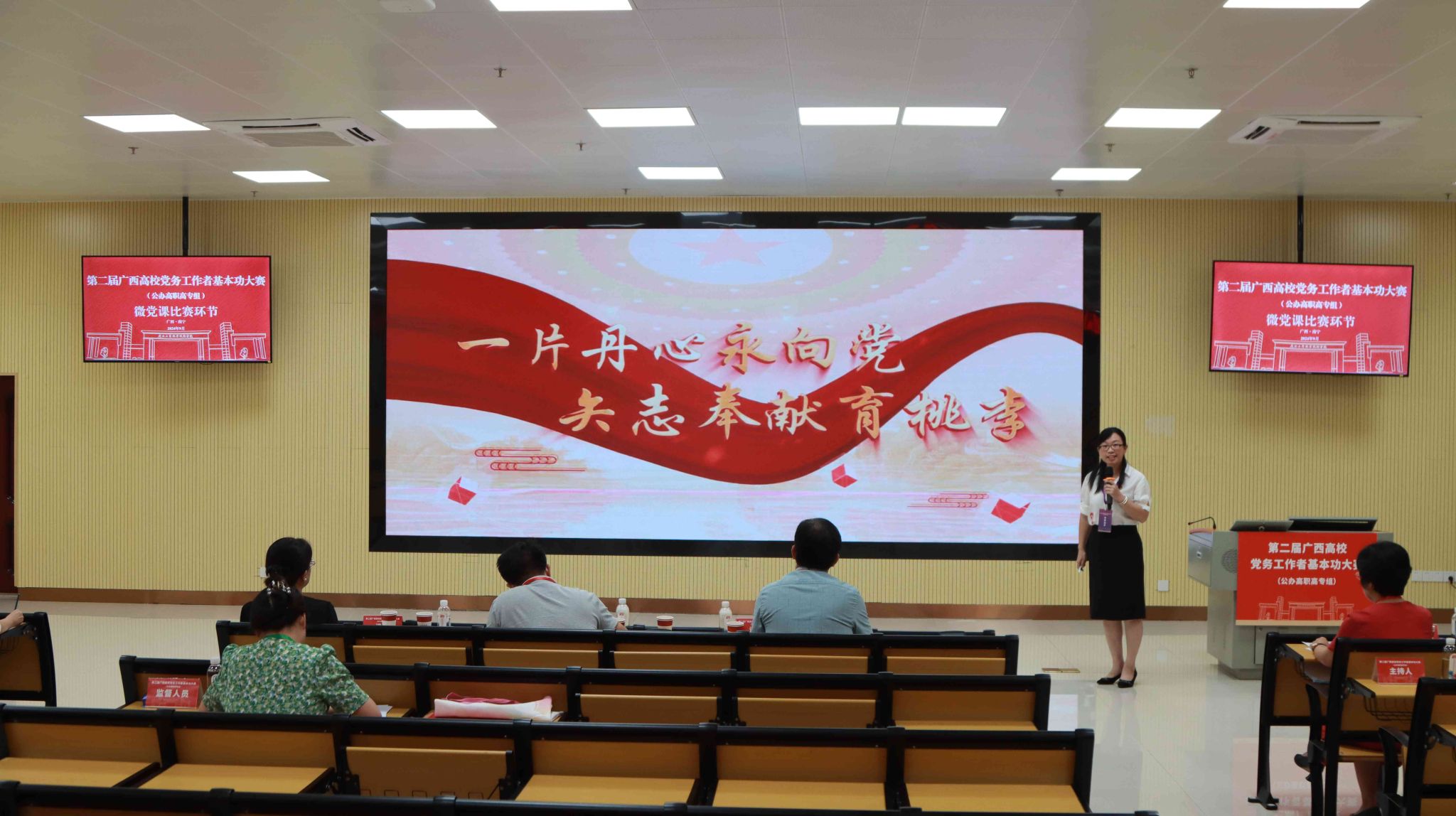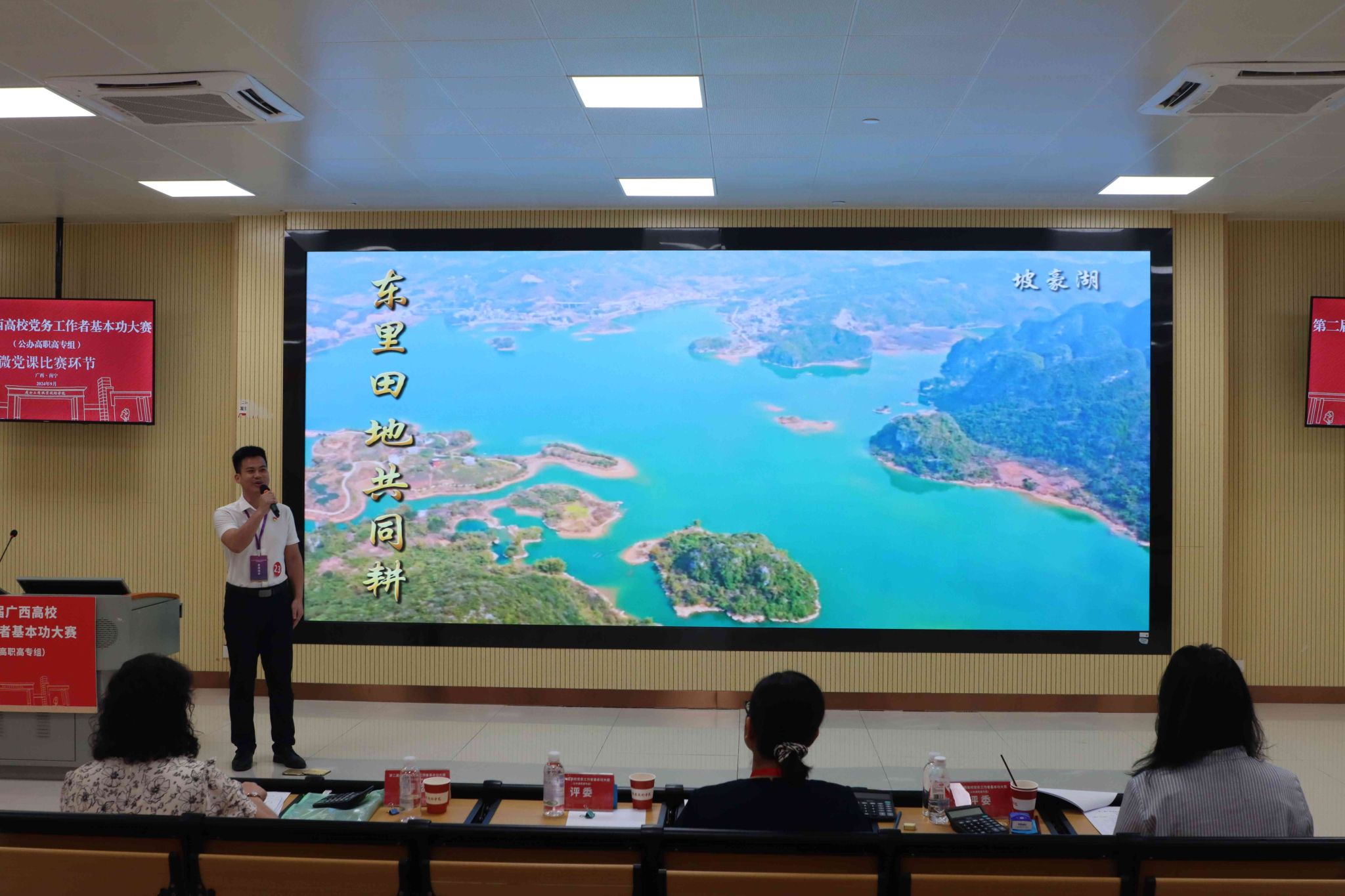 “創(chuàng)先爭優(yōu)”練尖兵,“比學(xué)趕超”展風(fēng)采。9月19日至20日,由自治區(qū)黨委教育工委主辦、我校承辦的第二屆廣西高校黨務(wù)工作者基本功大賽(公辦高職高專組)在學(xué)校武鳴校區(qū)舉辦,來自全區(qū)29所高職高專院校的82名黨務(wù)工作者同臺競技、角逐爭魁。學(xué)校黨委書記李維,自治區(qū)黨委教育工委組織部部長、一級調(diào)研員唐春燕出席大賽閉幕式。