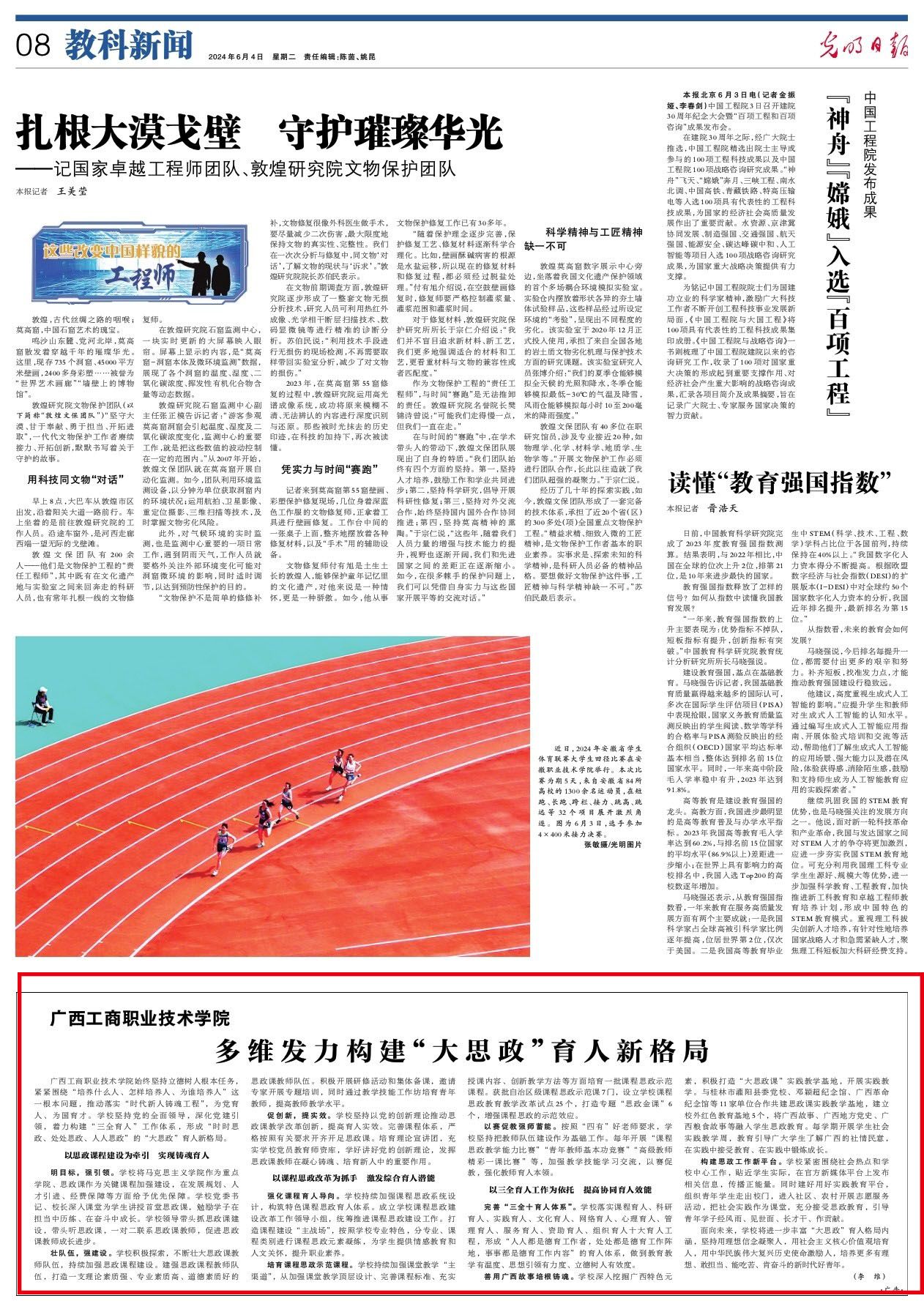 2024年6月出版的《光明日報(bào)》刊發(fā)學(xué)校黨委書記李維署名文章《廣西工商職業(yè)技術(shù)學(xué)院:多維發(fā)力構(gòu)建“大思政”育人新格局》。全文如下。