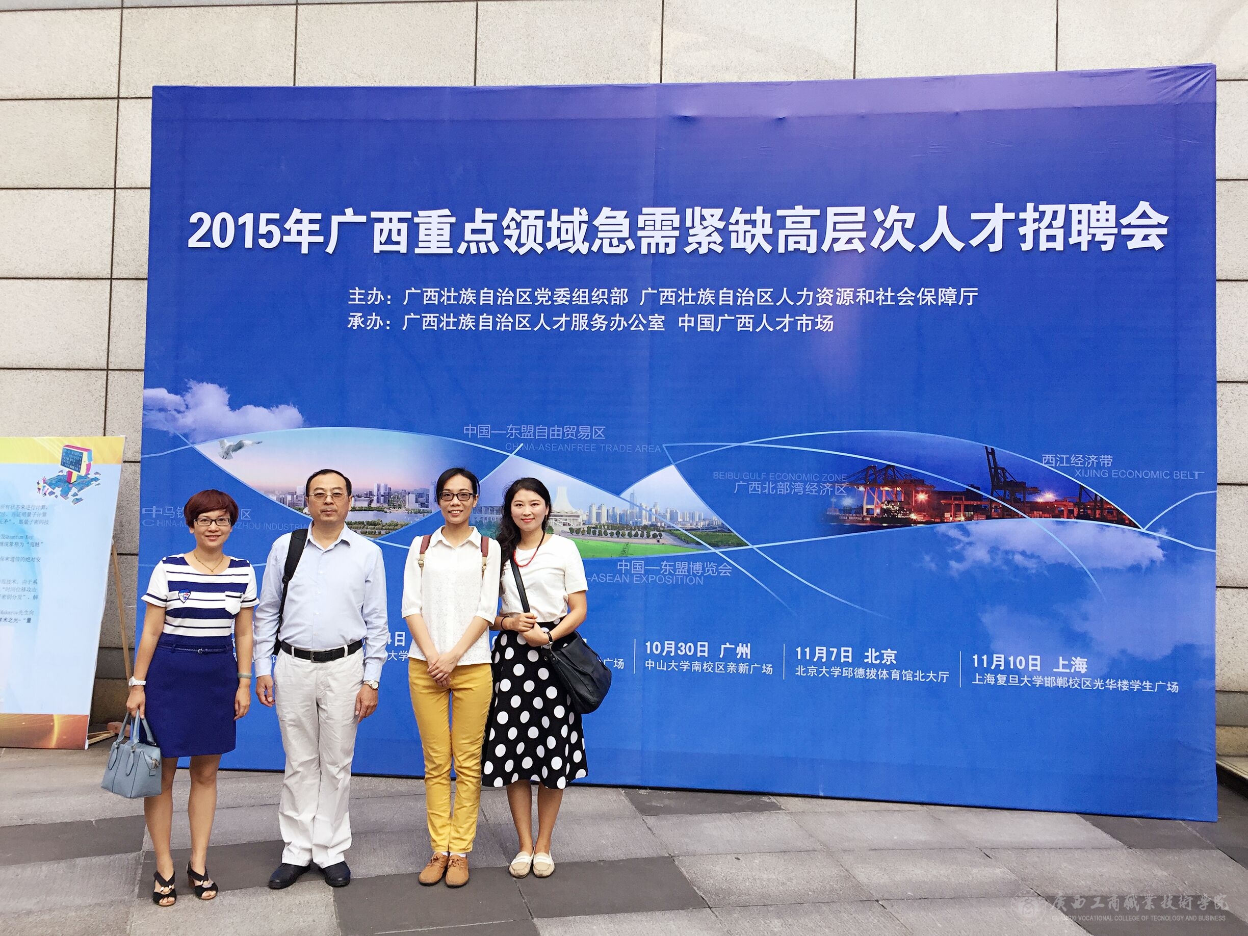 10月21日至25日期間,學(xué)院黨委副書記蒙啟成率隊(duì)趕赴重慶、武漢兩地參加2015年廣西重點(diǎn)領(lǐng)域急需緊缺高層次人才招聘會。本次招聘會由廣西區(qū)人力資源和社會保障廳主辦,邀請了百余所高校及企業(yè)參加。