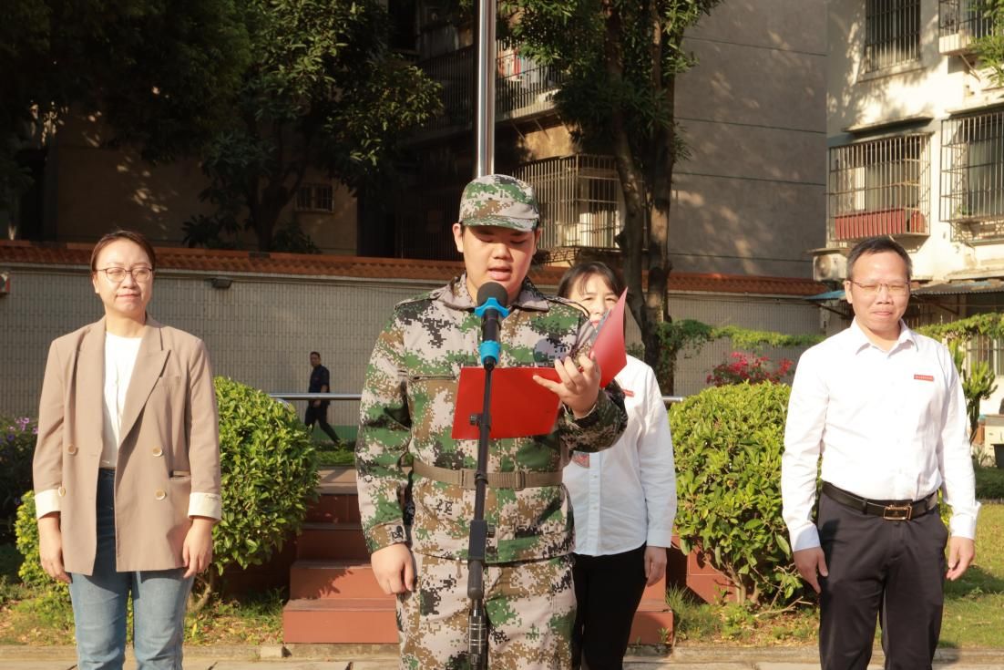 來自鵬飛校區(qū)信息與設計學院視覺2407班的學生胡家溪、中堯校區(qū)數(shù)會2403班的學生唐嘉源作為參訓學生代表發(fā)言。他們表示,軍訓是一次自我挑戰(zhàn)與成長的旅程,在接下來的訓練過程中,將做到聽從指揮,磨煉意志,增強技能,團結一致,力爭蛻變?yōu)橛啦环?、永不言敗的鋼鐵戰(zhàn)士,以更加堅定的信念,勇敢面對未來生活的挑戰(zhàn),努力實現(xiàn)人生價值。
