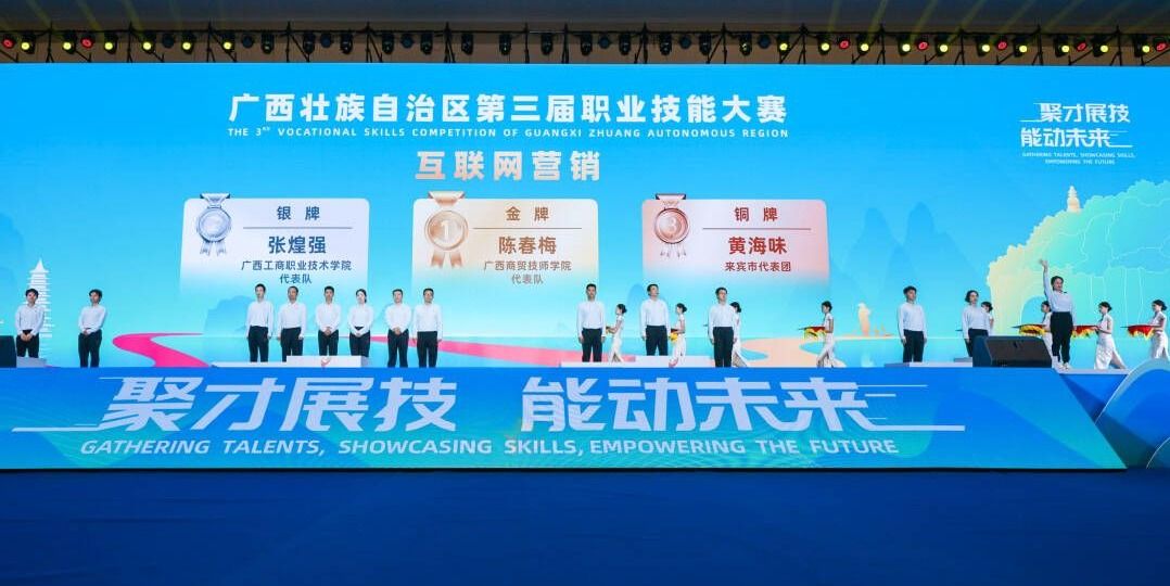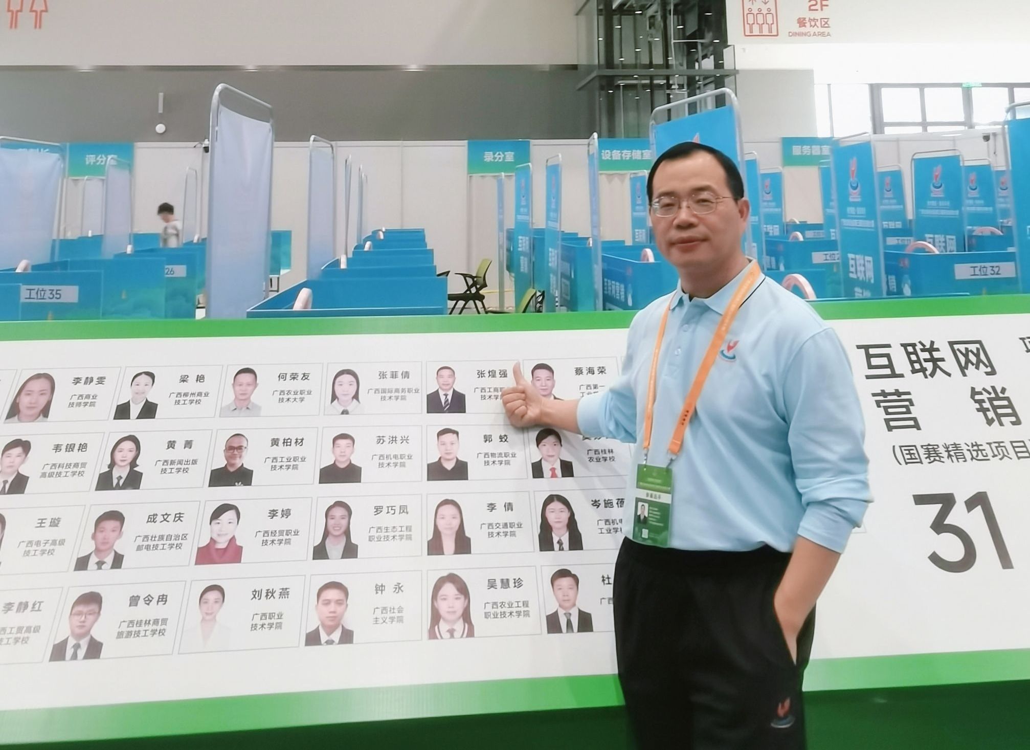 技能人才是支撐中國制造、中國創(chuàng)造的重要力量。11月8日-10日,廣西壯族自治區(qū)第三屆職業(yè)技能大賽在桂林國際會展中心盛大開賽。來自各大企業(yè)的技能工匠,以及來自職業(yè)院校的技能精英齊聚一堂,展開技能大比拼。在高手云集的賽場上,我校教師張煌強教授沉著應戰(zhàn),憑借精湛的專業(yè)技能和優(yōu)良的表現(xiàn),在競爭激烈的互聯(lián)網(wǎng)營銷賽項中,一路過關斬將,最終榮獲大賽銀獎的優(yōu)異成績,按參賽文件規(guī)定還將被授予“廣西技術能手”的光榮稱號,為我校贏得又一項含金量較高的成果,展現(xiàn)了我校職業(yè)技能人才敢于亮相、勇于爭先的風采。