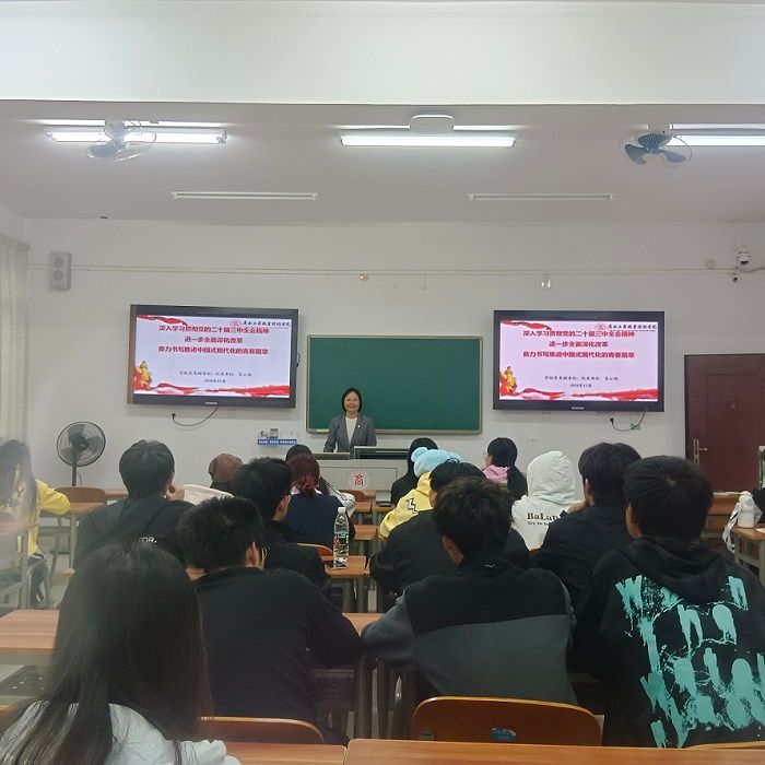 在本次專題課中,韋云鳳運(yùn)用生動(dòng)的故事,詳實(shí)的數(shù)據(jù),帶領(lǐng)同學(xué)們深入學(xué)習(xí)領(lǐng)會(huì)了黨的二十屆三中全會(huì)精神,大家表示要好好學(xué)習(xí),掌握專業(yè)本領(lǐng),為國家發(fā)展做出自己的貢獻(xiàn)。