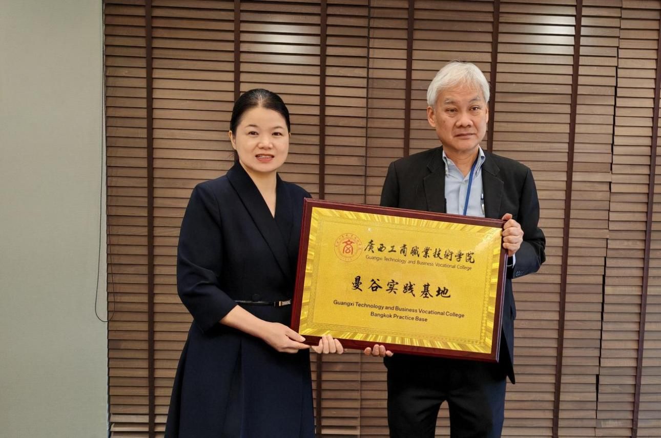 (廣西工商職業(yè)技術(shù)學(xué)院曼谷實(shí)踐基地授牌儀式。圖右為泰國(guó)正大管理學(xué)院副校長(zhǎng)Somrote Komolavanij(宋洛)教授)