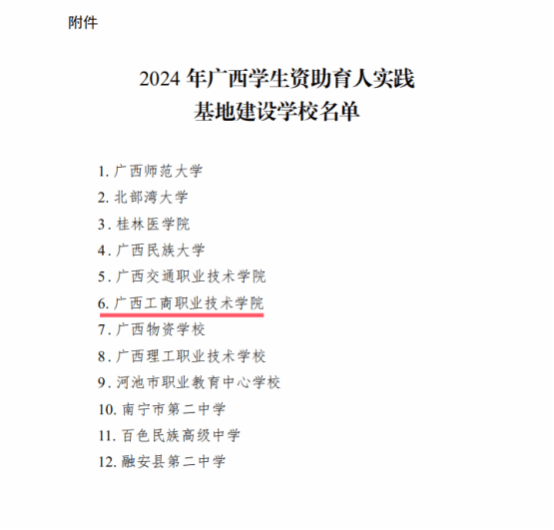 近日,自治區(qū)教育廳發(fā)布了《自治區(qū)教育廳關(guān)于公布2024廣西學(xué)生資助育人實(shí)踐基地建設(shè)學(xué)校名單的通知》,我校獲評(píng)第二批廣西高校資助育人實(shí)踐示范基地建設(shè)高校。這標(biāo)志著我校在資助育人平臺(tái)建設(shè)上取得新的突破,也是學(xué)校資助育人工作質(zhì)量不斷提升的重要體現(xiàn)。