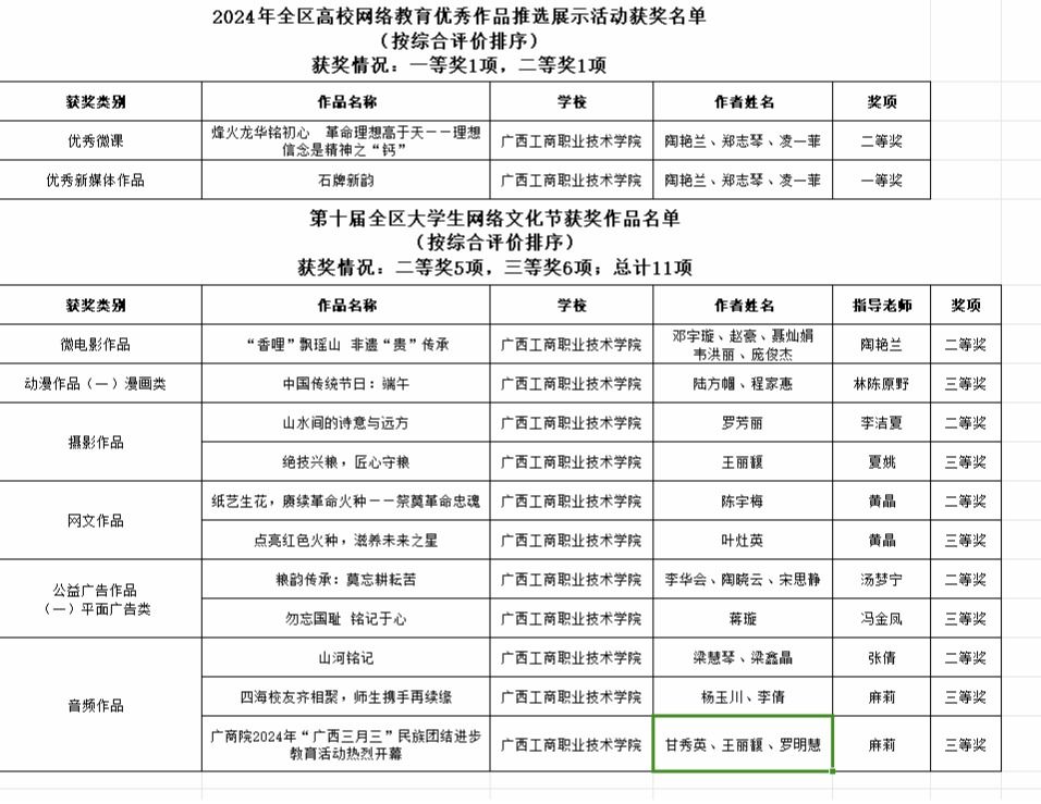 近日,自治區(qū)教育廳和自治區(qū)黨委網(wǎng)信辦公布第十屆全區(qū)大學生網(wǎng)絡文化節(jié)和2024年全區(qū)高校網(wǎng)絡教育優(yōu)秀作品推選展示活動獲獎名單,我校在優(yōu)秀微課、優(yōu)秀新媒體作品、微電影、漫畫、攝影、網(wǎng)文、公益廣告、音頻等8類作品的征集中榮獲13個獎項,其中一等獎1個、二等獎6個、三等獎6個。