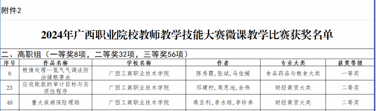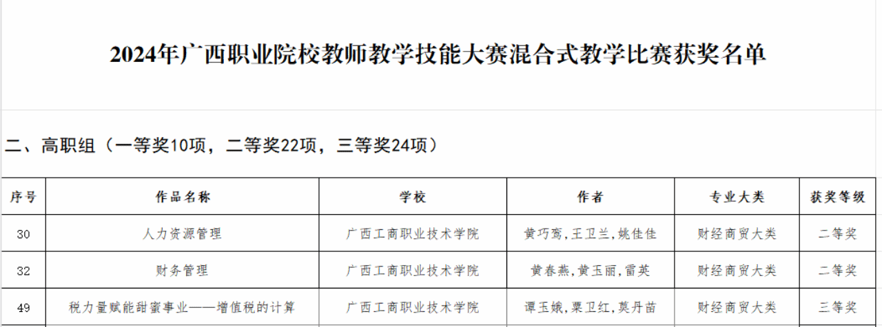 近日,自治區(qū)教育廳公布了2024年廣西職業(yè)院校教師教學(xué)技能大賽混合式教學(xué)比賽及微課教學(xué)比賽獲獎名單,我校教師在比賽中榮獲佳績,共獲一等獎1個、二等獎4個、三等獎1個。
