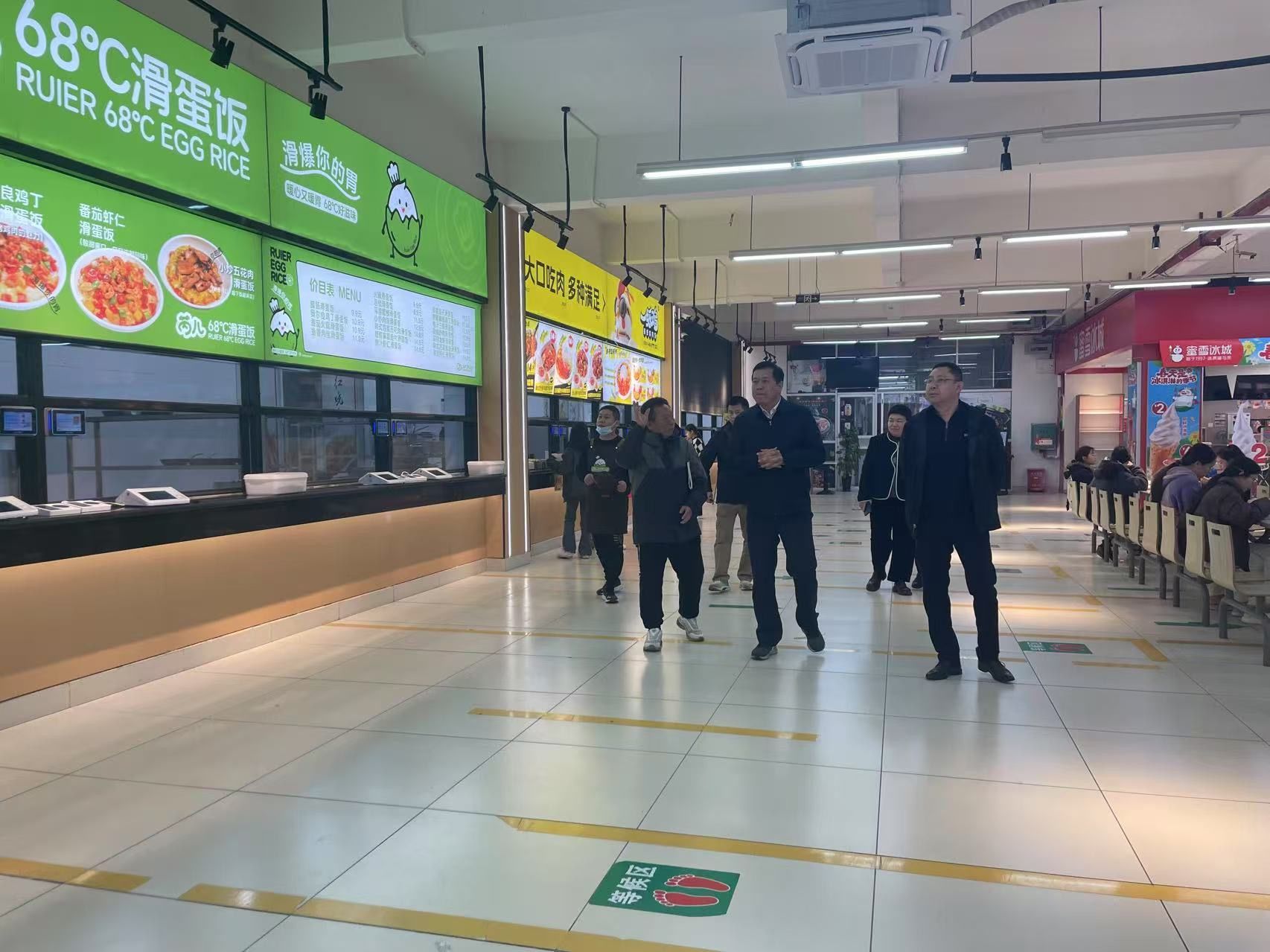 在食堂,李維書記一行深入商業(yè)區(qū)、食堂外立面、就餐區(qū)域等,對食堂周邊及內(nèi)部衛(wèi)生、宣傳等環(huán)節(jié)進(jìn)行嚴(yán)格檢查,要求后勤管理處督促食堂工作人員務(wù)必將食品安全意識放在首位,嚴(yán)格把控食品質(zhì)量,規(guī)范操作流程,為師生提供安全、衛(wèi)生、可口的餐飲服務(wù)。