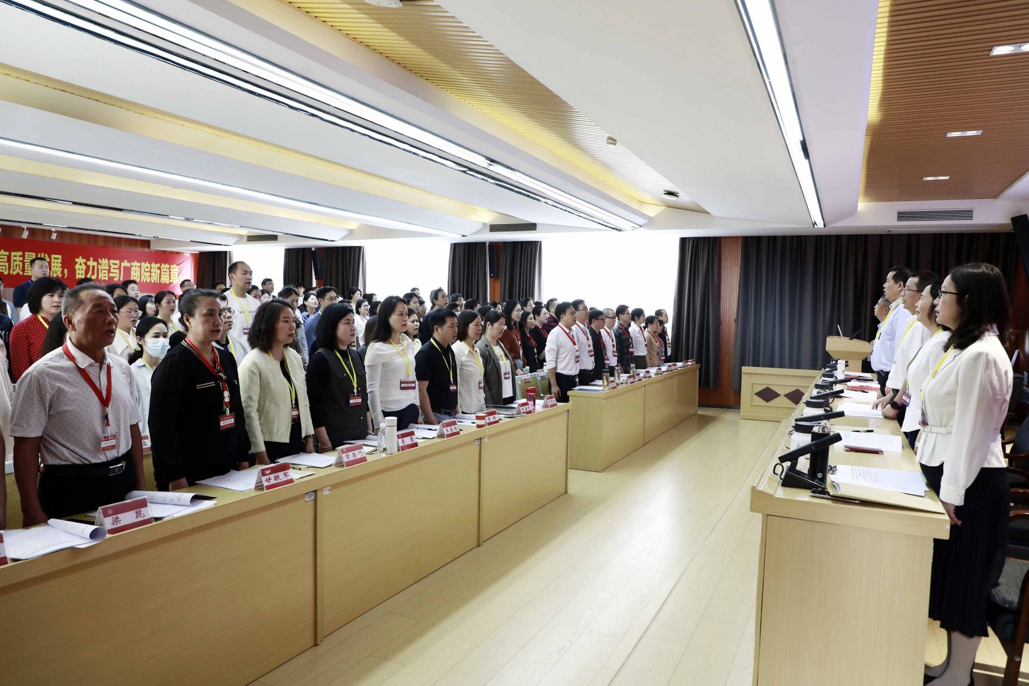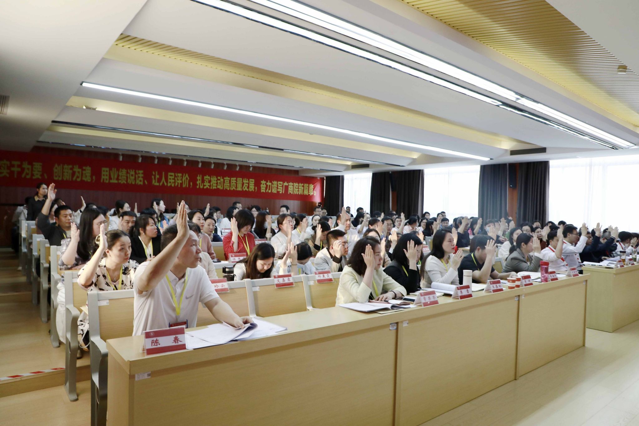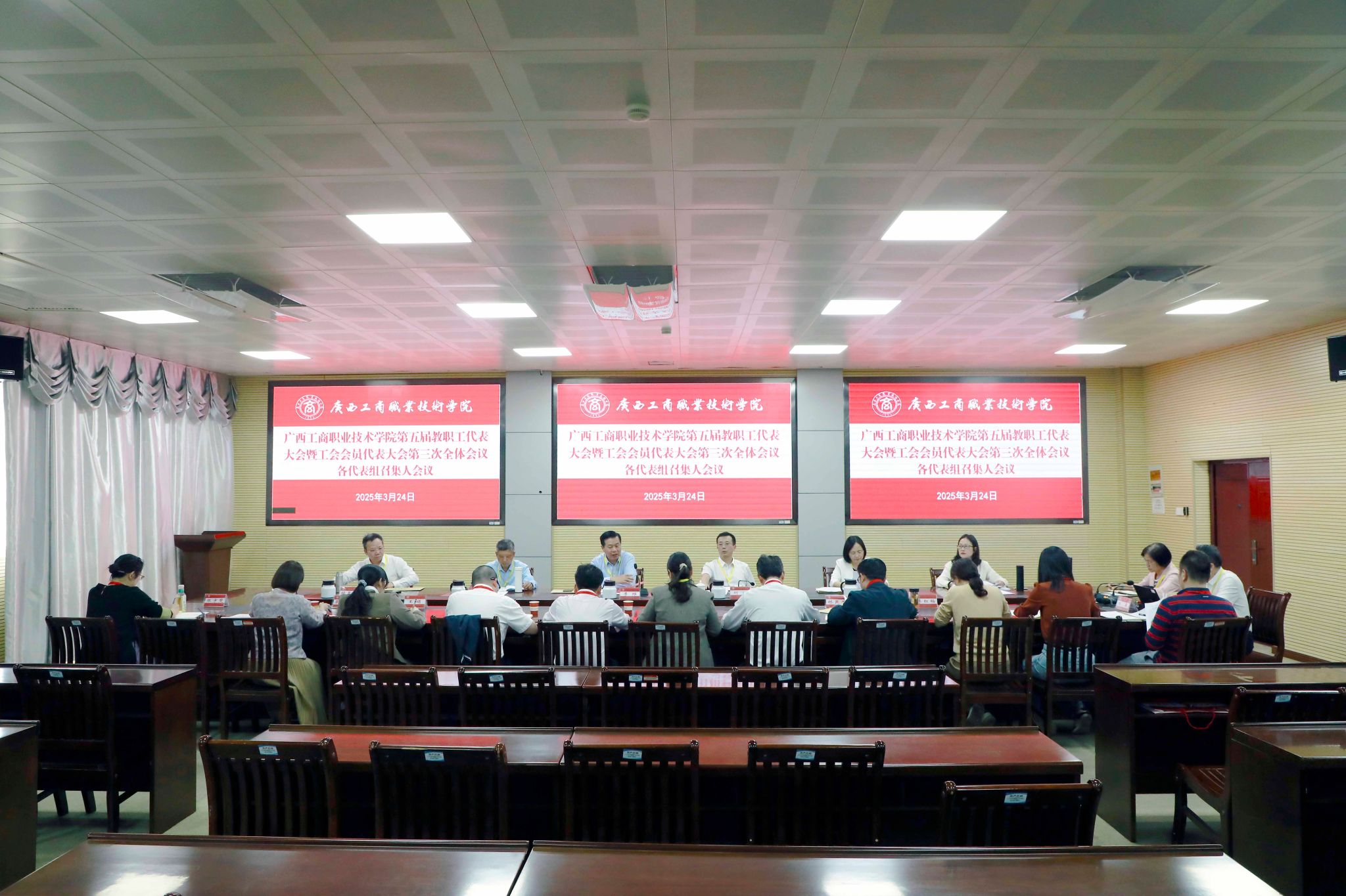 凝心聚力謀發(fā)展,砥礪奮進(jìn)譜新篇。3月24日,學(xué)校在鵬飛校區(qū)召開第五屆教職工代表大會暨工會會員代表大會第三次全體會議。學(xué)校黨委書記李維,黨委副書記、校長劉進(jìn),黨委副書記安仲文,黨委副書記、紀(jì)委書記韋云鳳,副校長闕勇平,副校長鄭華,來自全校各部門各單位的教代會代表、工代會代表、列席代表、特邀代表參加會議。