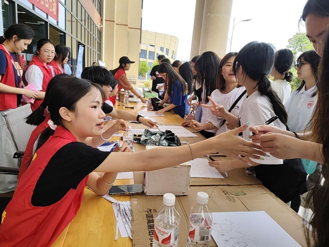在啟動(dòng)儀式后的互動(dòng)環(huán)節(jié),在鵬飛校區(qū)、武鳴校區(qū)、中堯校區(qū)開(kāi)展了讀書(shū)日系列活動(dòng)?!霸?shī)詞大挑戰(zhàn)” 環(huán)節(jié)中,參與者需要根據(jù)提示猜出相應(yīng)的詩(shī)詞,不僅考驗(yàn)了大家的詩(shī)詞儲(chǔ)備量,更激發(fā)了對(duì)中華經(jīng)典詩(shī)詞的熱愛(ài);“套圈” 游戲別出心裁,獎(jiǎng)品為多肉植物、綠植盆栽等,讓師生們?cè)谟螒虻耐瑫r(shí)收獲一抹綠意;“你畫(huà)我猜”現(xiàn)場(chǎng)妙趣橫生,參與者手腳并用、形象比劃,搭檔絞盡腦汁猜測(cè)詞語(yǔ),夸張的動(dòng)作和搞笑的互動(dòng)引得圍觀人群捧腹大笑;“簽名打卡拍照”區(qū),師生們?cè)诰牟贾玫闹黝}背景墻前揮毫簽名,與書(shū)香留影,記錄下這充滿文化氣息的美好時(shí)刻。據(jù)統(tǒng)計(jì),本次活動(dòng)啟動(dòng)儀式參與人數(shù)規(guī)模為2200多人次。