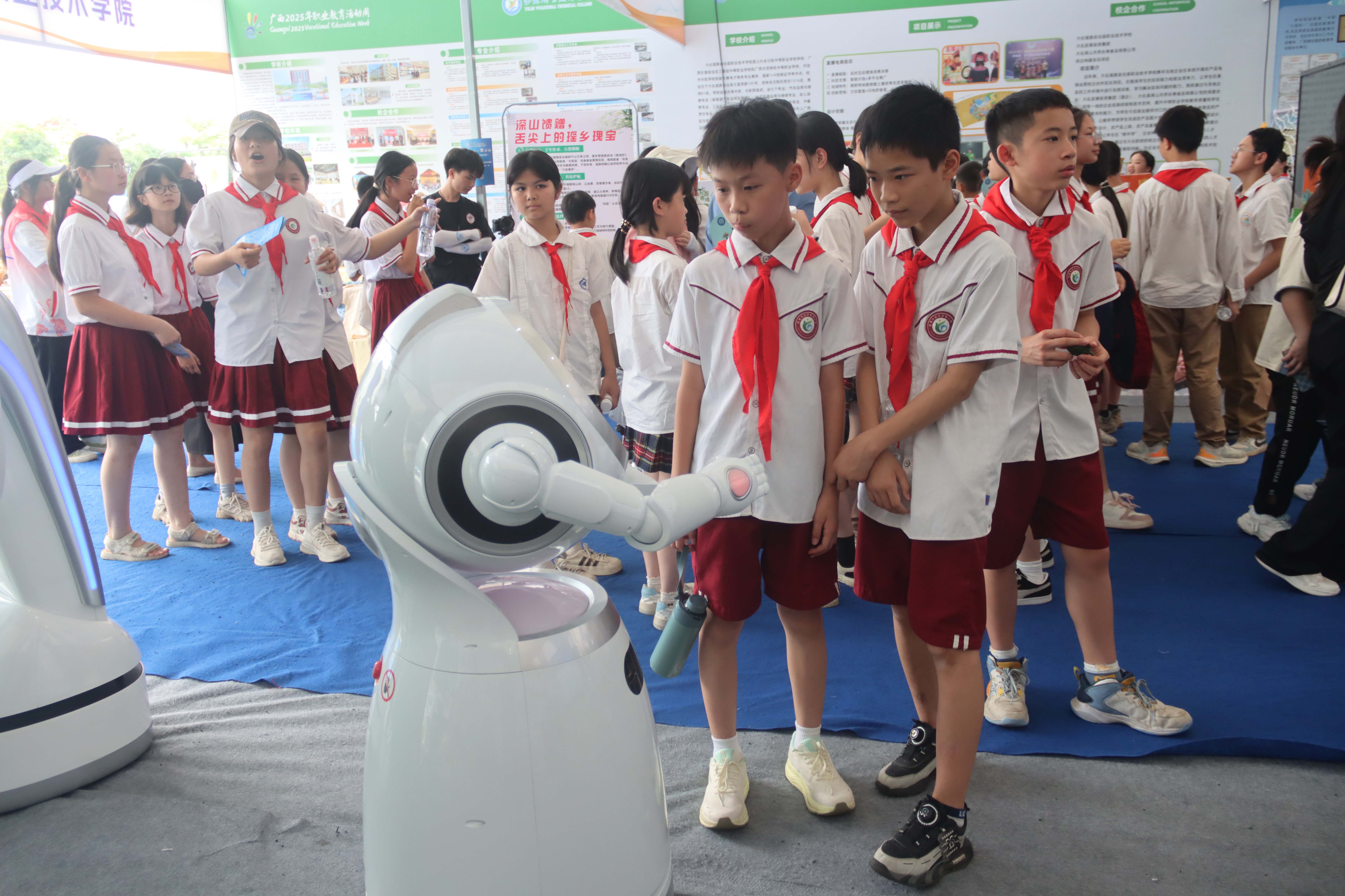 (學校展區(qū)吸引了眾多嘉賓、國際友人以及學生參觀、體驗活動)