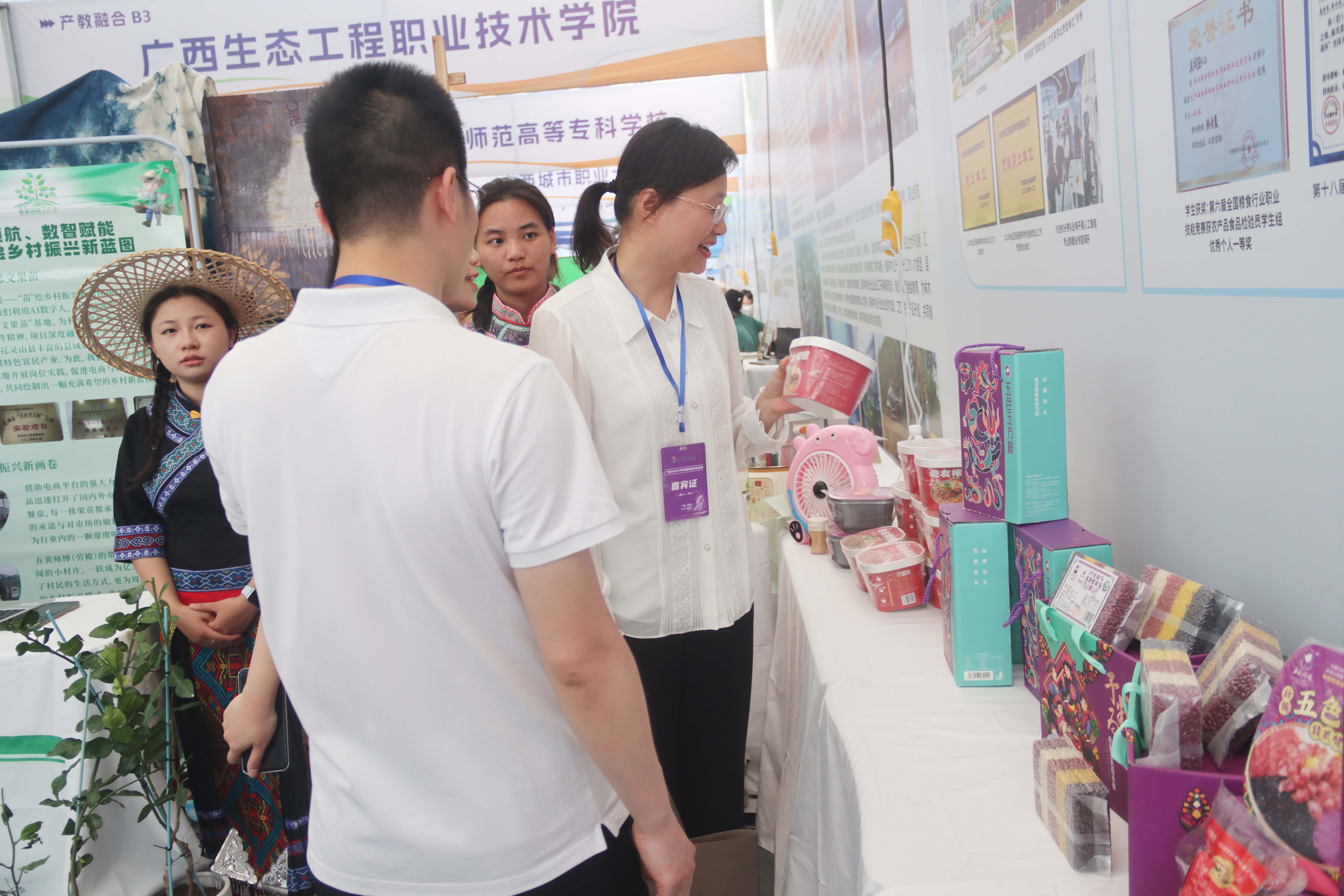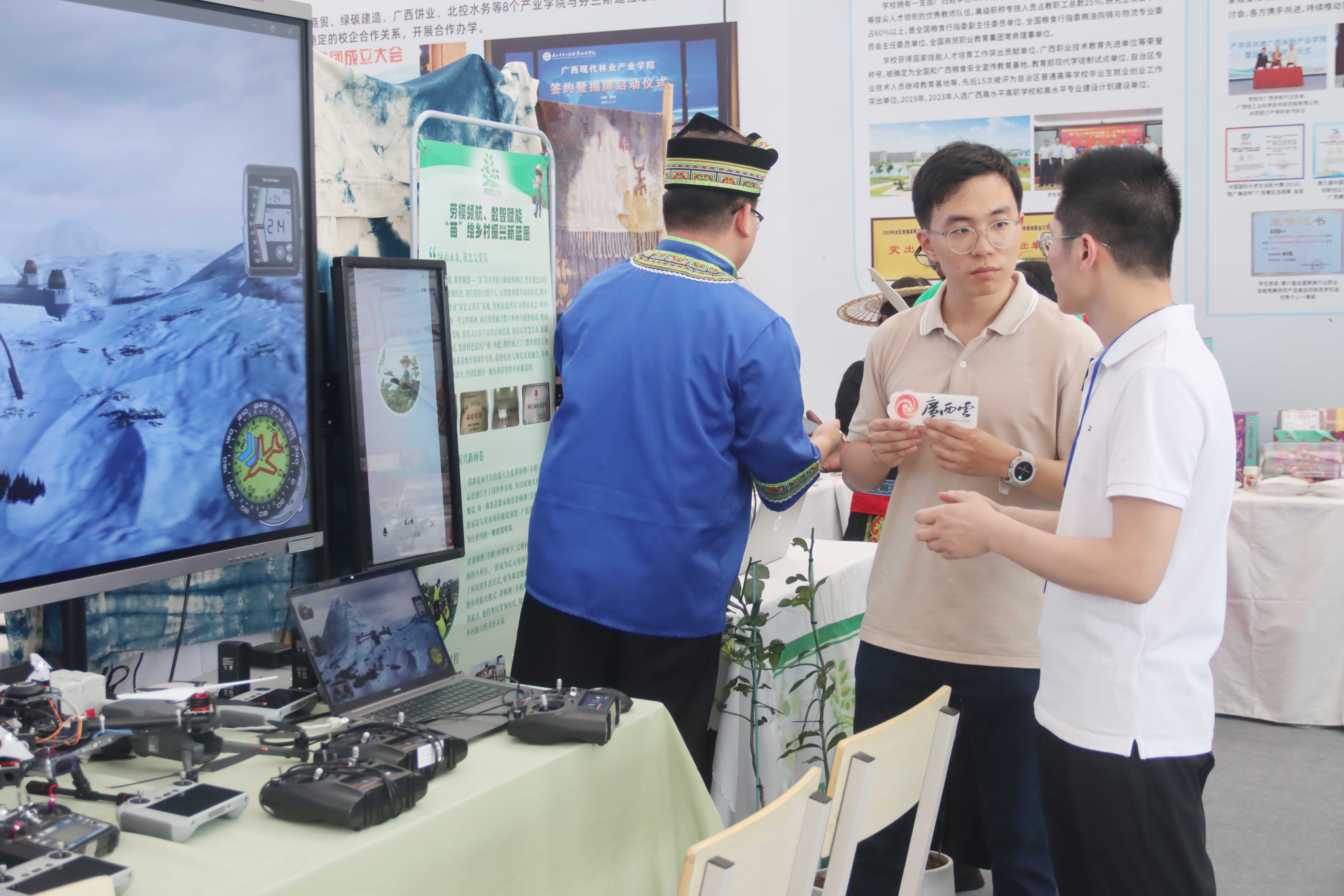 我校展位設(shè)在產(chǎn)教融合展區(qū),以“智創(chuàng)工坊·藝啟未來”為主題,通過展板、實物、交互活動的形式,以“產(chǎn)教融合、育訓(xùn)結(jié)合”為特色,展示學校扎根八桂大地,服務(wù)區(qū)域經(jīng)濟,融合傳統(tǒng)非遺技藝與前沿科技應(yīng)用,展現(xiàn)我校職業(yè)教育賦能廣西產(chǎn)業(yè)發(fā)展的創(chuàng)新實踐。