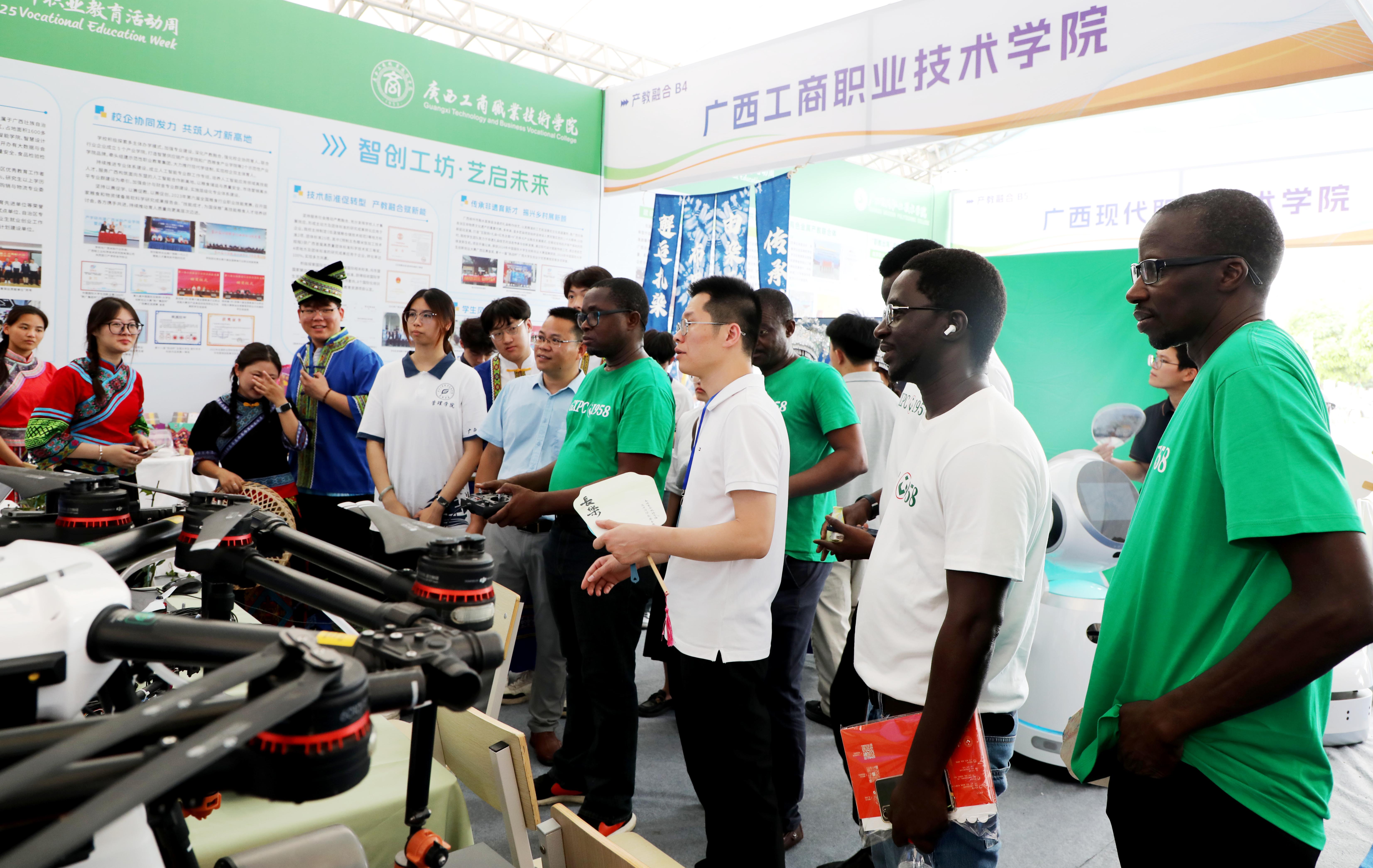 活動現(xiàn)場設(shè)置舞臺展演和主題展示區(qū)。主題展示區(qū)分為“高質(zhì)量發(fā)展”“產(chǎn)教融合”“職教出海”“技能成才”“社會服務(wù)”“民族文化傳承”六大展區(qū),充分展示廣西職業(yè)教育發(fā)展成效。舞臺展演分為廣西非遺文化、民族歌舞等表演以及職業(yè)院校學生技術(shù)技能表演兩個篇章。