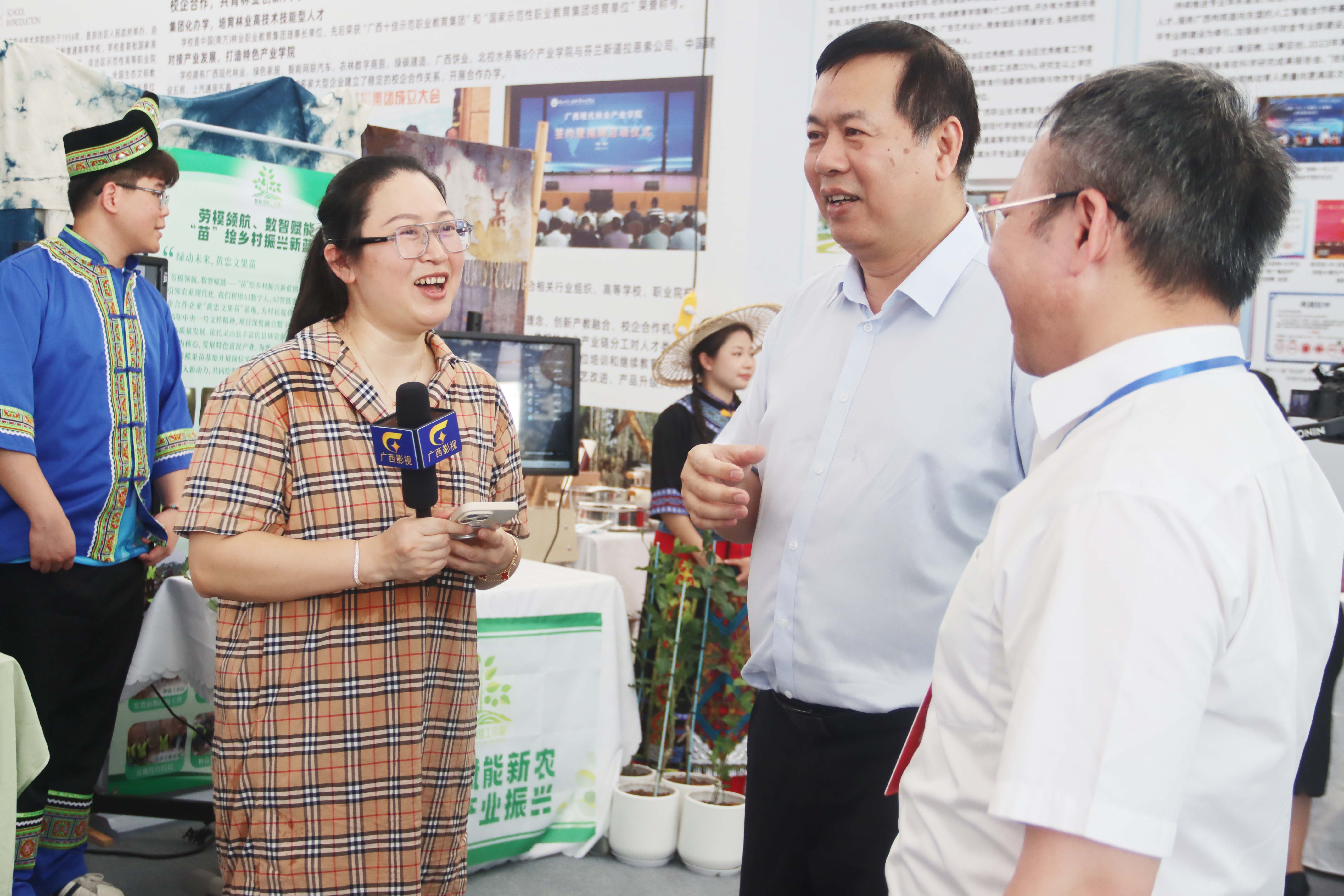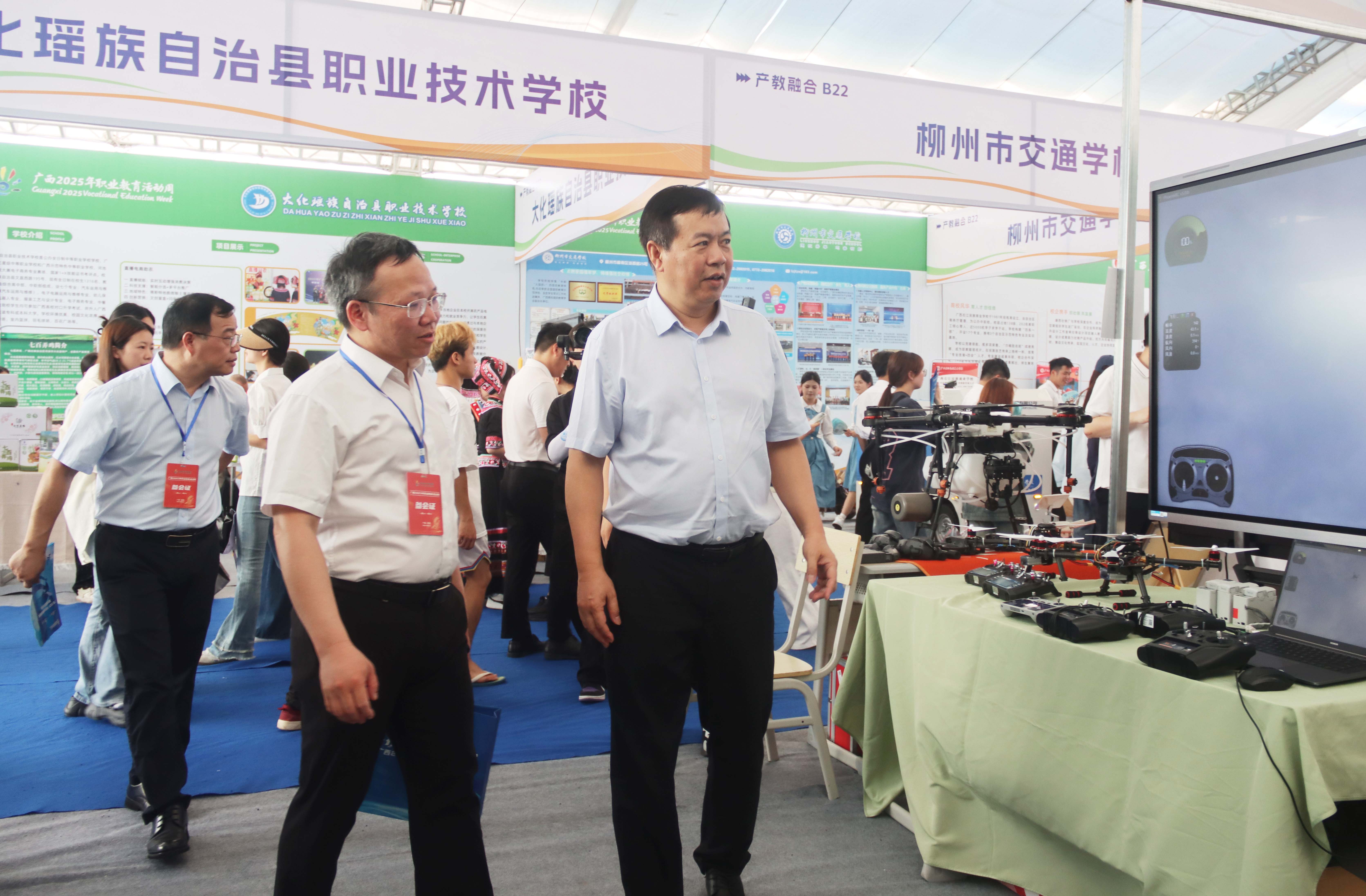 (自治區(qū)教育廳職成處副處長王卓到我校展區(qū)參觀指導(dǎo))