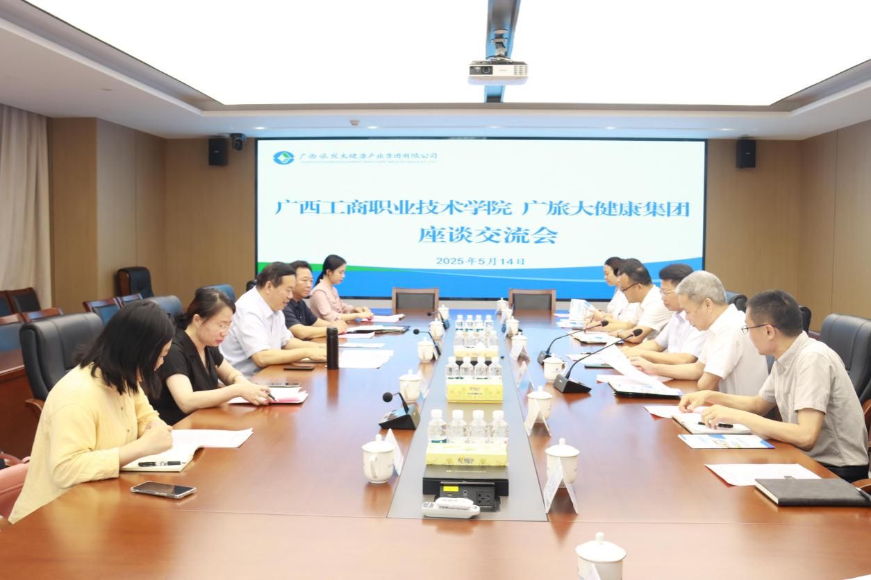 座談會上,廣旅集團(tuán)黨委委員、副總經(jīng)理黃延對我校的到訪表示熱烈歡迎,他介紹了廣旅大健康產(chǎn)業(yè)集團(tuán)的發(fā)展情況,集團(tuán)以大健康產(chǎn)業(yè)為平臺,聚焦發(fā)展醫(yī)療、康養(yǎng)、產(chǎn)業(yè)三大業(yè)務(wù)板塊,充分發(fā)揮醫(yī)療產(chǎn)業(yè)的支撐作用、康養(yǎng)產(chǎn)業(yè)的輻射作用和藥食產(chǎn)業(yè)的引領(lǐng)作用,探索多形式、多元化“康養(yǎng)+”賦能模式,力爭成為立足廣西,面向全國、鏈接?xùn)|盟的區(qū)域大健康行業(yè)引領(lǐng)者。他表示,廣西工商職業(yè)技術(shù)學(xué)院辦學(xué)底蘊(yùn)深厚,師資力量雄厚,面向社會,聯(lián)合行業(yè)協(xié)會、企業(yè)積極構(gòu)建AI+“糧·商”人才培養(yǎng)體系。希望雙方以此次戰(zhàn)略合作為契機(jī),在養(yǎng)老健康管理等方面積極構(gòu)建校企合作聯(lián)動雙贏的發(fā)展格局。