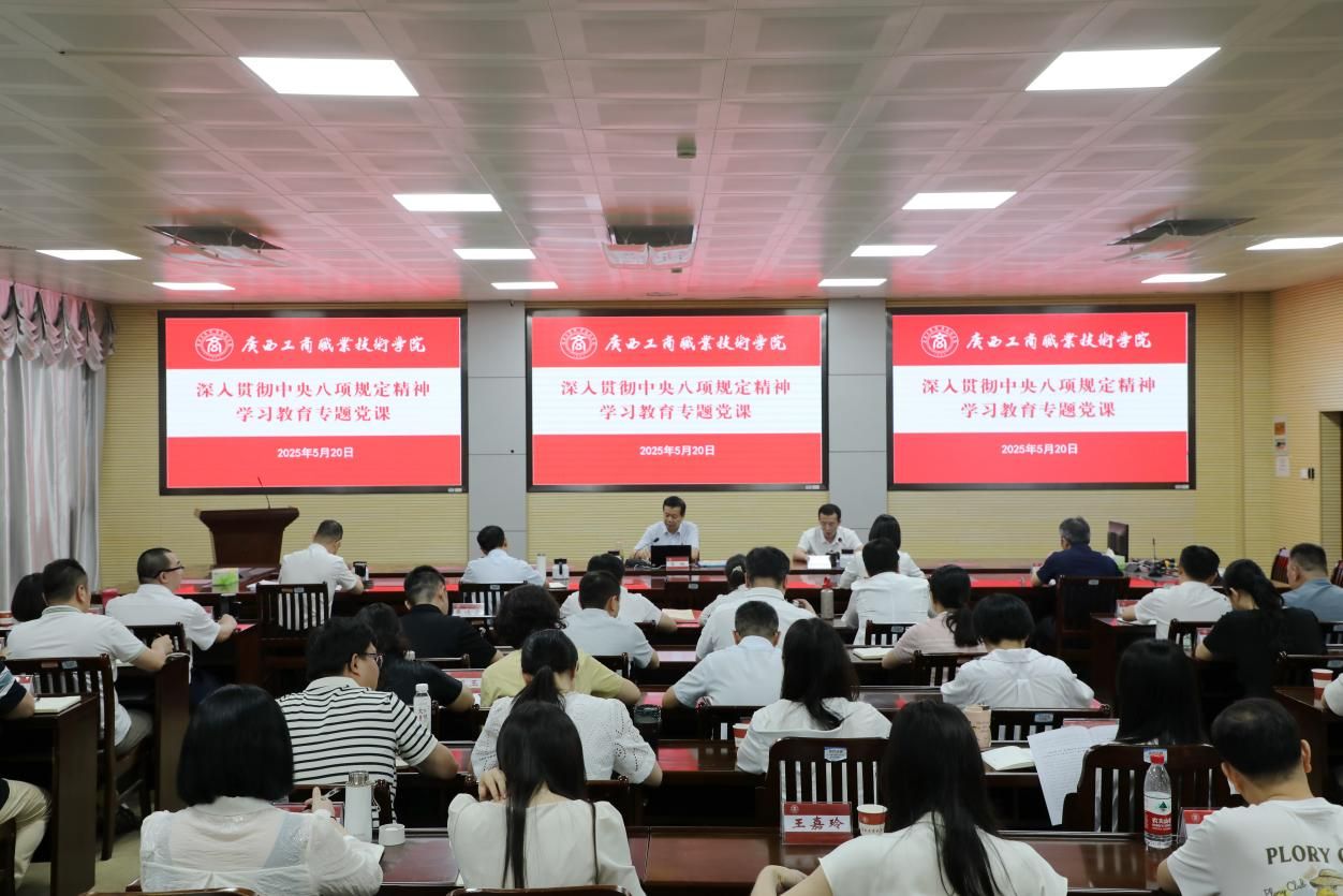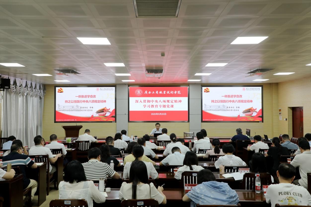 5月20日,學(xué)校在鵬飛校區(qū)開(kāi)展深入貫徹中央八項(xiàng)規(guī)定精神學(xué)習(xí)教育專題黨課,學(xué)校黨委書(shū)記李維授課,引導(dǎo)黨員干部始終堅(jiān)守思想防線和紀(jì)律底線。學(xué)校黨委副書(shū)記、校長(zhǎng)劉進(jìn)主持會(huì)議并講話。