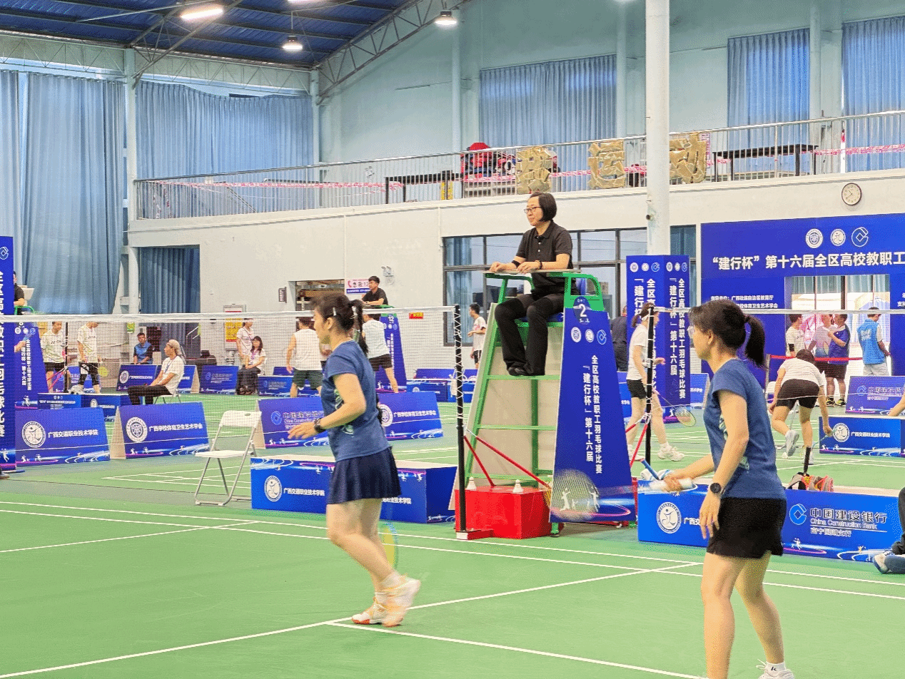 2025年6月5日—8日,由廣西壯族自治區(qū)教育廳指導(dǎo)、廣西學(xué)校體育衛(wèi)生藝術(shù)學(xué)會(huì)主辦、廣西交通職業(yè)技術(shù)學(xué)院承辦的“建行杯”第十六屆全區(qū)高校教職工羽毛球比賽在廣西交通職業(yè)技術(shù)學(xué)院昆侖校區(qū)精彩開賽。全區(qū)53所高校658名教職工運(yùn)動(dòng)員參與競(jìng)技,賽事設(shè)置了教職工混合團(tuán)體賽、校長(zhǎng)組單打和雙打賽。學(xué)校校長(zhǎng)劉進(jìn),黨委副書記、紀(jì)委書記韋云鳳,副校長(zhǎng)陳寧春等16名教練員、運(yùn)動(dòng)員參加。學(xué)校黨委副書記、工會(huì)主席安仲文為領(lǐng)隊(duì)帶隊(duì)參加。