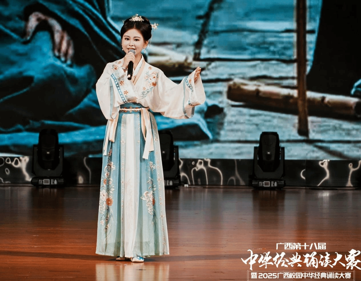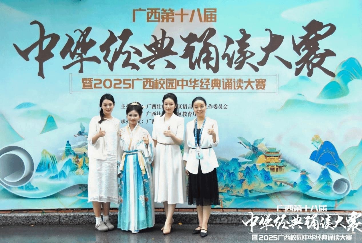 6月14日——16日,由自治區(qū)教育廳、自治區(qū)語委主辦的"廣西第十八屆中華經(jīng)典誦讀大賽暨2025廣西校園中華經(jīng)典誦讀大賽"現(xiàn)場總決賽在廣西民族大學(xué)思源湖校區(qū)圓滿落幕。我校精心組織師生團(tuán)隊(duì)參賽,通過精彩演繹展現(xiàn)中華經(jīng)典的文化魅力,獲得評委與觀眾高度贊譽(yù)。