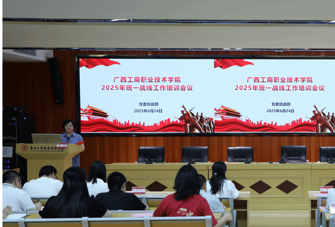 為深入學習貫徹習近平總書記關于做好新時代黨的統(tǒng)一戰(zhàn)線工作的重要思想,進一步提升學校統(tǒng)一戰(zhàn)線(下文簡稱統(tǒng)戰(zhàn))工作隊伍的理論水平和業(yè)務能力,6月24日,學校在鵬飛校區(qū)2145會議室召開2025年統(tǒng)一戰(zhàn)線工作培訓會。黨委統(tǒng)戰(zhàn)部副部長岑郁同志主持會議并作培訓。學校各黨總支、各直屬黨支部書記以及統(tǒng)戰(zhàn)委員,團委負責人及負責統(tǒng)戰(zhàn)工作人員參加會議。