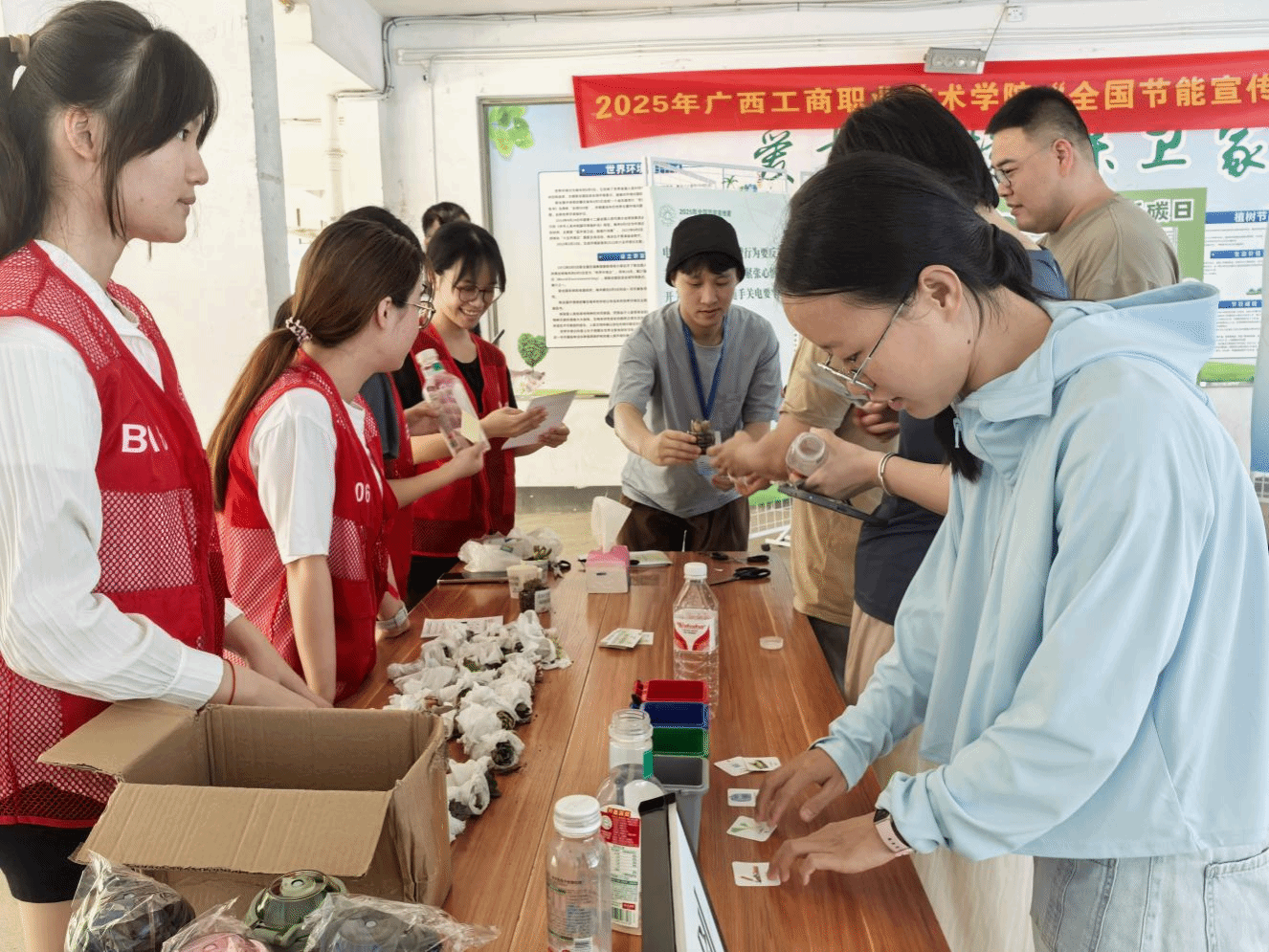 6月25日是全國低碳日,學(xué)校在鵬飛校區(qū)舉行以“碳路先鋒、綠動(dòng)未來”為主題的科普宣傳活動(dòng)?;顒?dòng)以節(jié)能降碳和垃圾分類等為重點(diǎn)宣傳領(lǐng)域,現(xiàn)場(chǎng)設(shè)置宣傳展臺(tái)、橫幅、展板、互動(dòng)游戲區(qū)。學(xué)校后勤管理處向師生發(fā)放宣傳彩頁、節(jié)能資料,組織師生開展廢棄塑料瓶換綠植、垃圾分類小游戲、爭(zhēng)當(dāng)節(jié)能宣傳大使等豐富多樣的互動(dòng)游戲,向全校師生發(fā)出“碳路先鋒、綠動(dòng)未來”的理念,倡導(dǎo)全民積極踐行“簡約適度、綠色低碳、文明健康”的生活方式?;顒?dòng)期間,學(xué)校各部門、各單位組織還師生集中收看全國公共機(jī)構(gòu)節(jié)能宣傳周啟動(dòng)儀式及專題宣傳片《守護(hù)》。