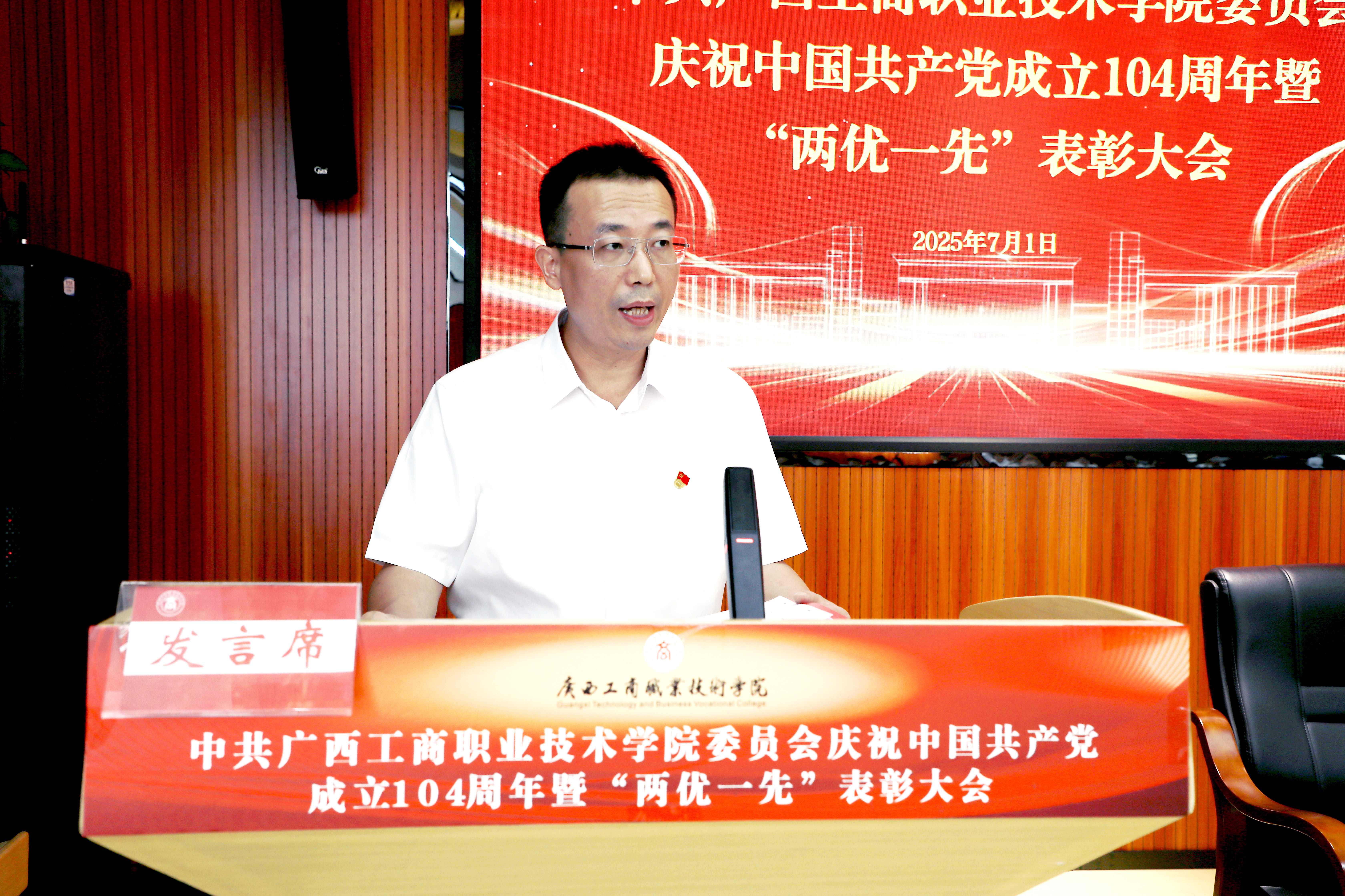 為慶祝中國共產(chǎn)黨成立104周年,回顧黨的光輝歷程,弘揚(yáng)黨的優(yōu)良傳統(tǒng),表彰先進(jìn)、樹立典型,展示新時(shí)代共產(chǎn)黨人的良好形象和精神面貌,7月1日,學(xué)校召開慶祝中國共產(chǎn)黨成立104周年暨“兩優(yōu)一先”表彰大會(huì)。學(xué)校黨委書記李維,黨委副書記、校長(zhǎng)劉進(jìn),黨委副書記安仲文,黨委副書記、紀(jì)委書記韋云鳳,副校長(zhǎng)陳寧春、鄭華,部分教職工黨員,新發(fā)展黨員代表,離退休黨員代表在主會(huì)場(chǎng)參加會(huì)議,其余教職工黨員在分會(huì)場(chǎng)參會(huì)。大會(huì)由劉進(jìn)主持。