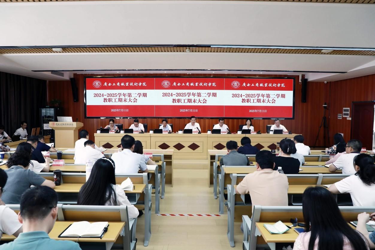 7月11日,學(xué)校在鵬飛校區(qū)召開2024—2025學(xué)年第二學(xué)期教職工期末大會(huì),總結(jié)本學(xué)期學(xué)校工作的成效和經(jīng)驗(yàn),部署推進(jìn)2025年下半年工作。學(xué)校領(lǐng)導(dǎo)李維、劉進(jìn)、安仲文、韋云鳳、陳寧春、闕勇平、鄭華,中層領(lǐng)導(dǎo)干部,部分教職工代表在主會(huì)場(chǎng)參會(huì),其余教職工在分會(huì)場(chǎng)參會(huì)。學(xué)校黨委書記李維主持大會(huì),學(xué)校校長(zhǎng)劉進(jìn)作學(xué)期工作總結(jié)報(bào)告。