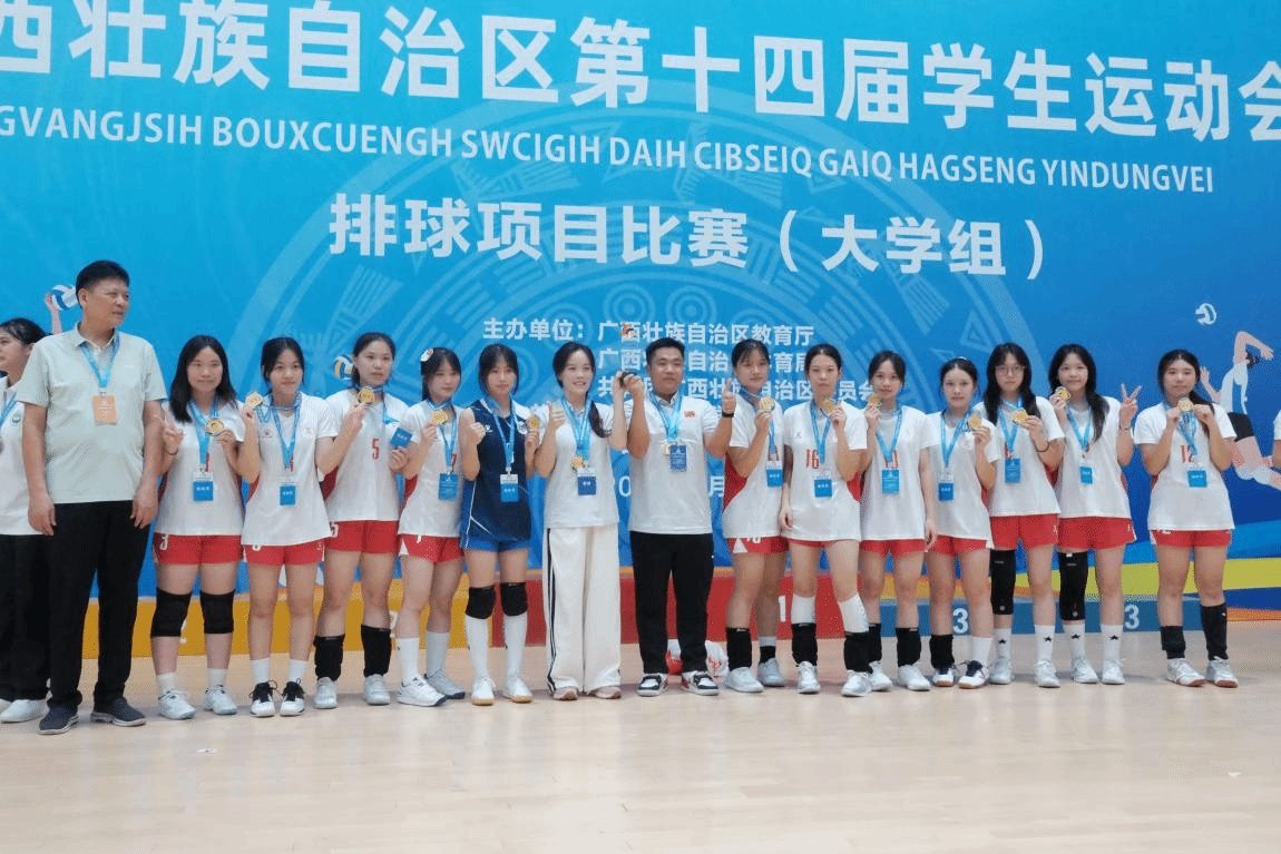 2025年7月10日,廣西壯族自治區(qū)第十四屆學(xué)生運動會排球項目(大學(xué)組)在桂林醫(yī)科大學(xué)體育館燃情開賽。我校代表隊由王秀美、凌展旭老師執(zhí)教女排,鄧淇元、韋武成老師執(zhí)教男排,范金明老師擔(dān)任后勤保障,24名運動員歷經(jīng)鏖戰(zhàn),最終斬獲高職高專女子組冠軍、男子組亞軍的輝煌戰(zhàn)績!