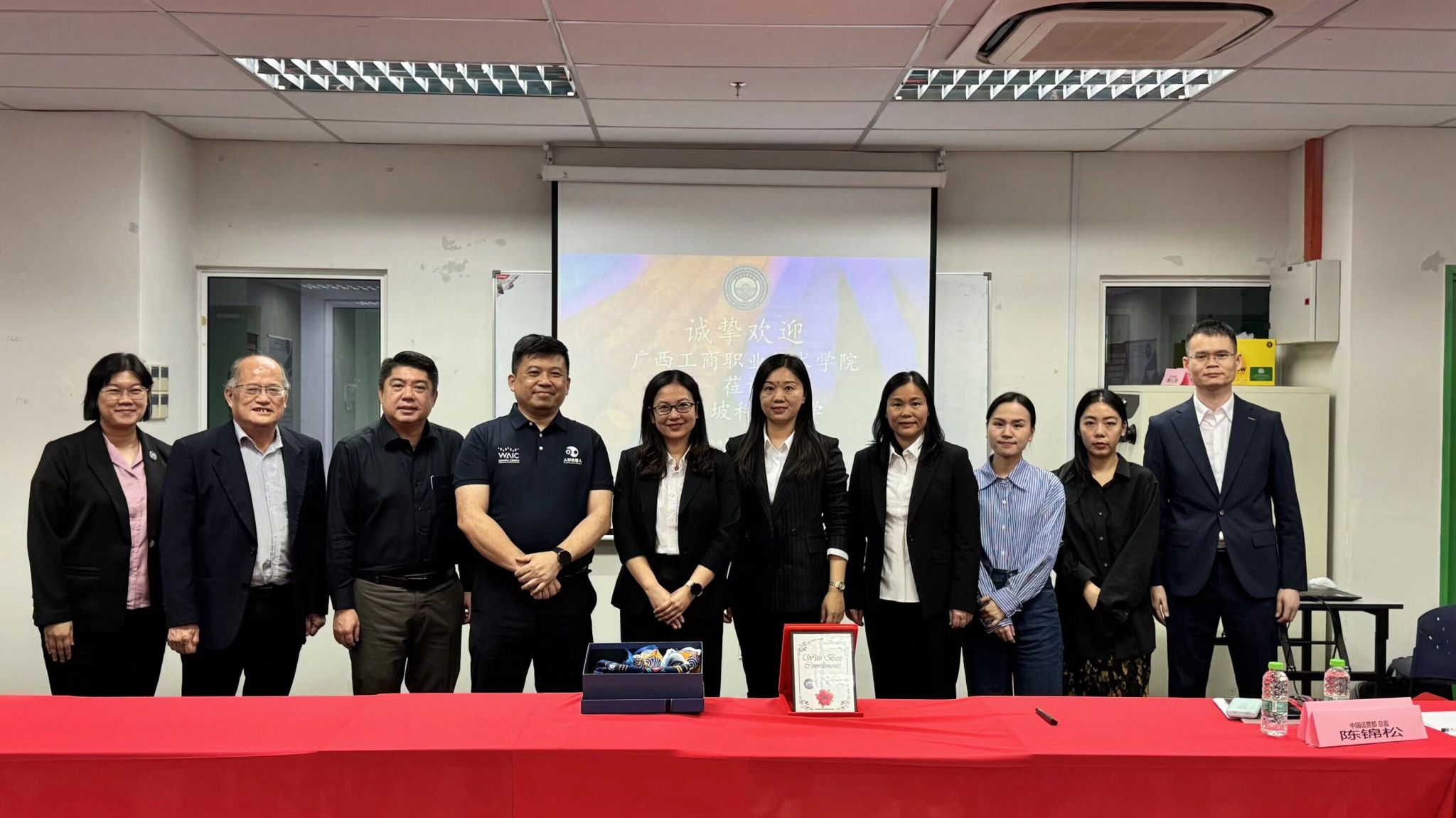 在吉隆坡科技大學,代表團實地參觀該校留學生服務中心、教學樓等設施,直觀了解其辦學優(yōu)勢。座談會上,雙方通過視頻、PPT展示辦學特色與成果,吉隆坡科技大學分享與廣西高校在學生交換、中方教師學歷提升等方面的合作經(jīng)驗。雙方進一步就國際化課程及資源共建、研學(游學)課程研發(fā)、師生學歷提升、中文+職業(yè)技能等領域合作可能性展開探討。