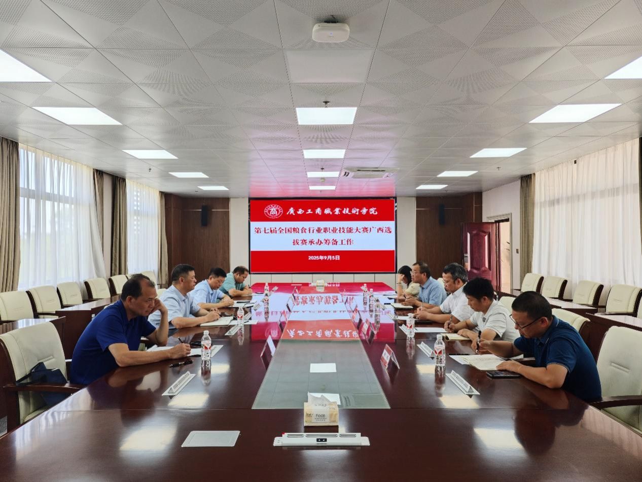 受自治區(qū)糧食和物資儲(chǔ)備局委托,第七屆全國糧食行業(yè)職業(yè)技能大賽廣西選拔賽將在我校武鳴校區(qū)舉辦。9月5日,自治區(qū)糧食和物資儲(chǔ)備局副局長覃家權(quán)、總工程師袁雙建等一行4人到學(xué)校武鳴校區(qū)開展大賽承辦籌備工作調(diào)研。學(xué)校副校長闕勇平、教務(wù)科研處副處長張煌強(qiáng)及相關(guān)大賽籌備工作人員參加調(diào)研。