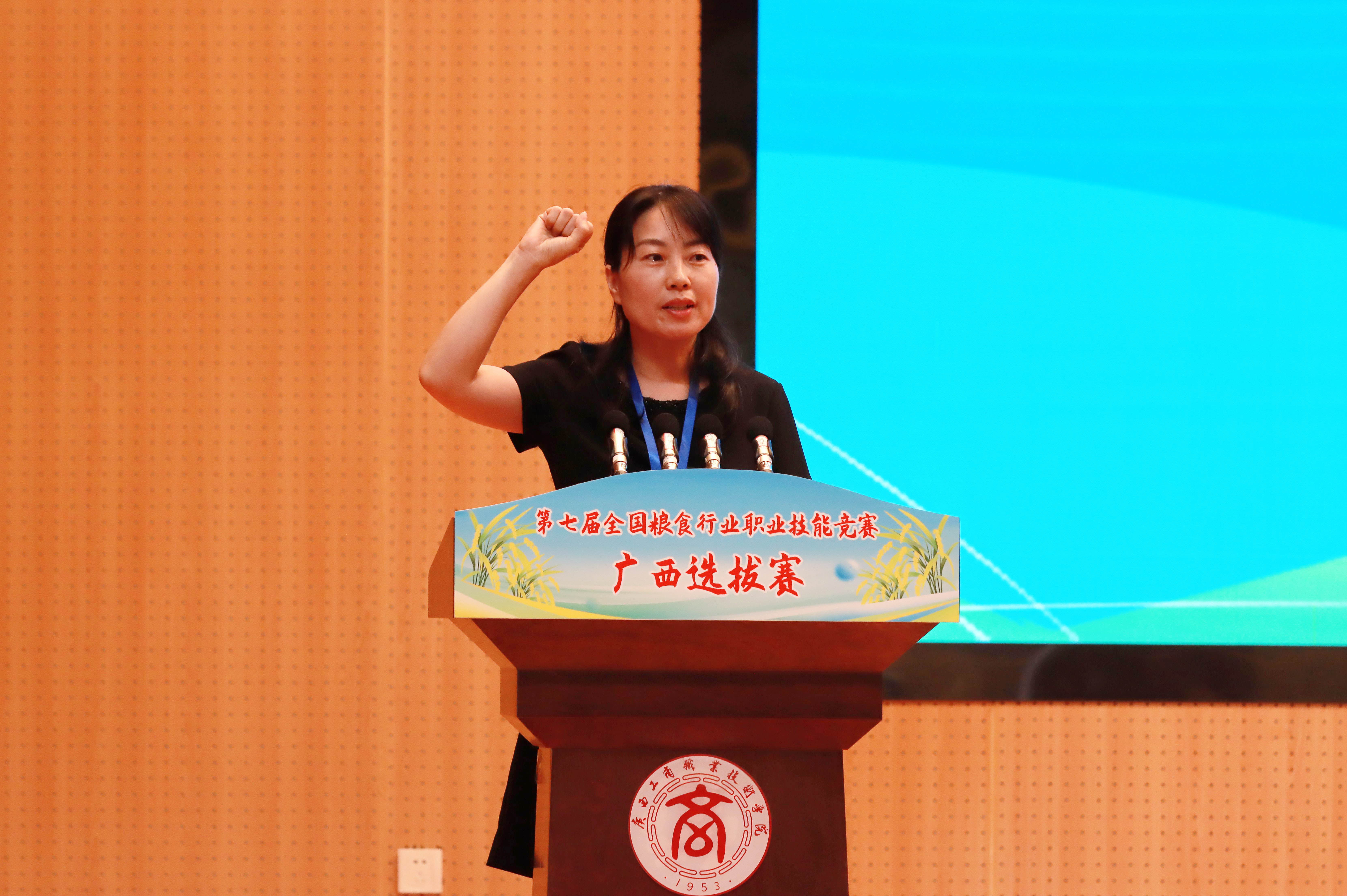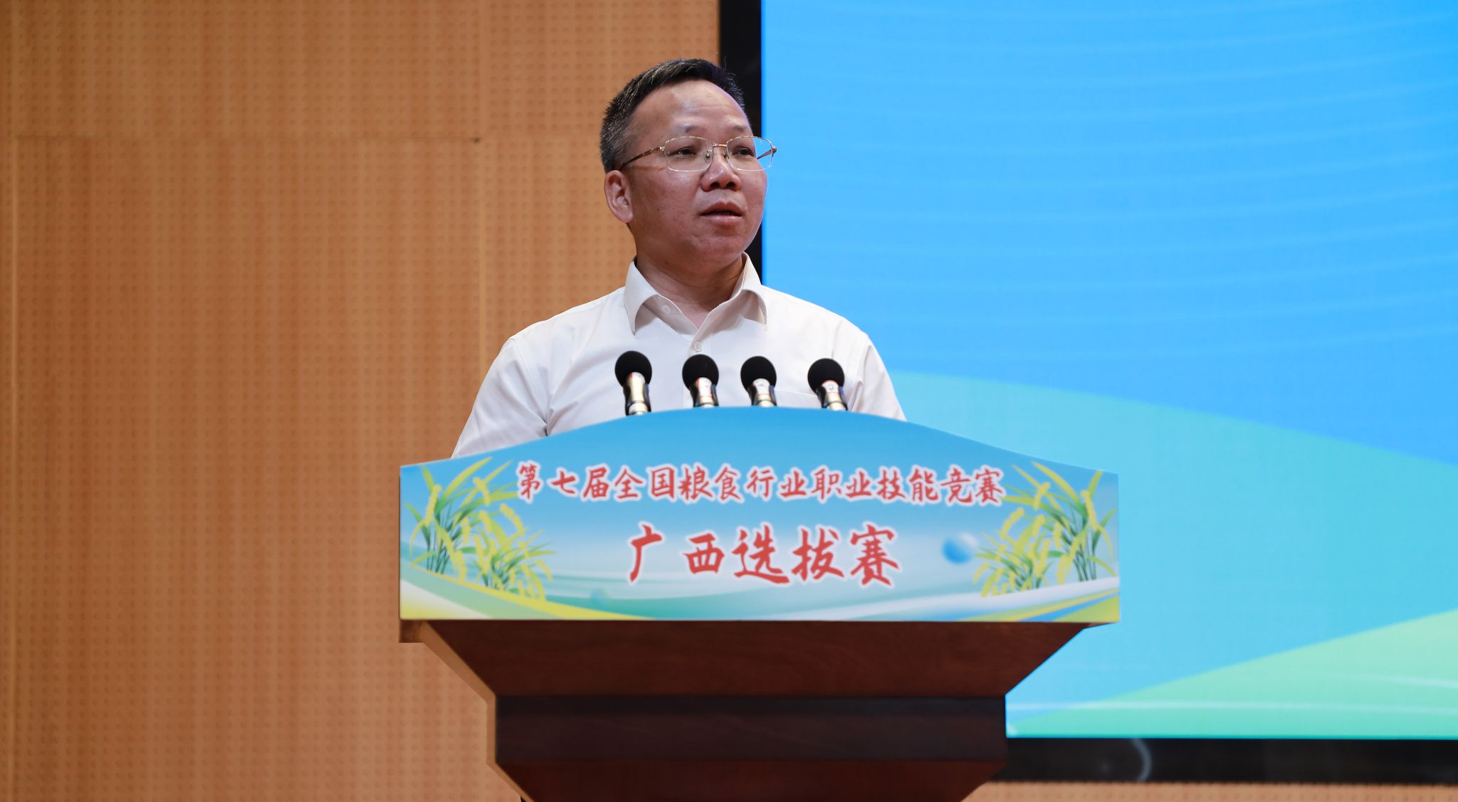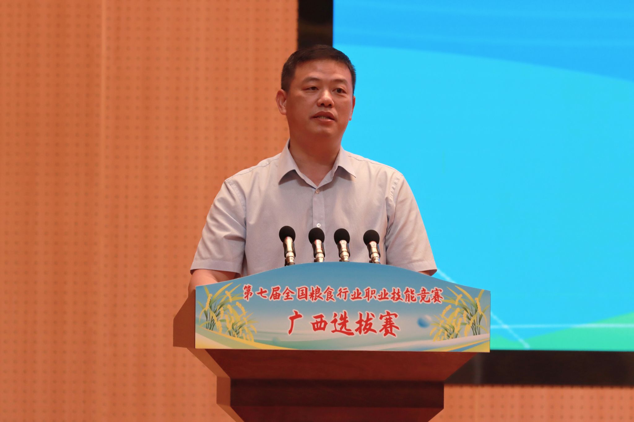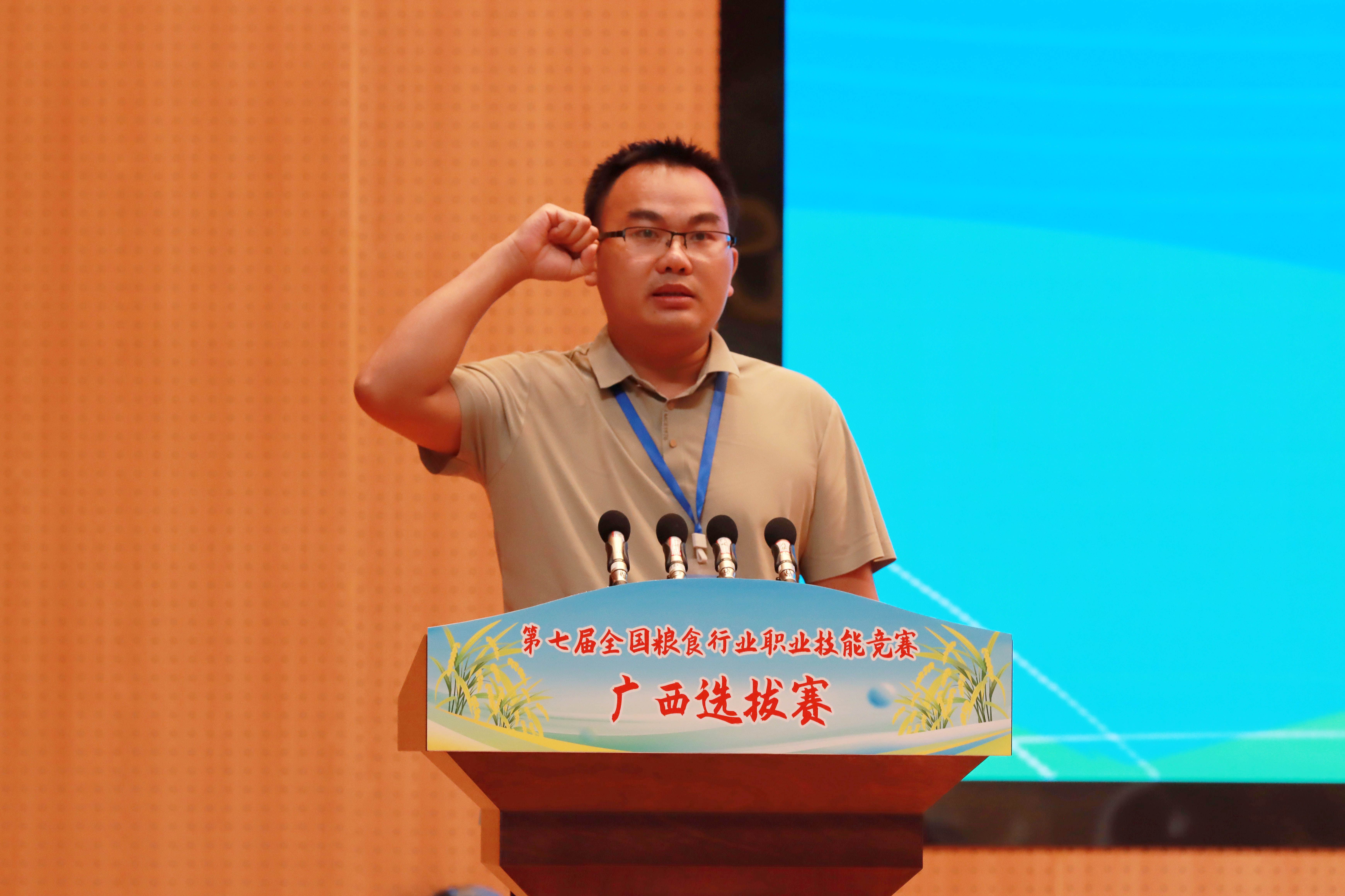 廣西壯族自治區(qū)糧食和物資儲備局黨組成員、副局長覃家權(quán)在開幕式上講話,他表示,糧食技能人才是保障國家糧食安全的重要支撐,是推動糧食產(chǎn)業(yè)高質(zhì)量發(fā)展的關(guān)鍵力量。自治區(qū)糧食和物資儲備局深入貫徹習(xí)近平總書記重要指示要求,以筑牢糧食安全屏障、全面推進廣西糧食行業(yè)高質(zhì)量發(fā)展為己任,大力實施“人才興糧”、“科技興糧”戰(zhàn)略,在人才培養(yǎng)體系、人才隊伍結(jié)構(gòu)、人才創(chuàng)新能力、人才管理體制等方面取得顯著成效。本次廣西選拔賽既是為全國糧食行業(yè)職業(yè)技能競賽遴選優(yōu)秀選手的重要一環(huán),更是激勵全區(qū)糧食行業(yè)廣大職工及相關(guān)專業(yè)的學(xué)生“學(xué)知識、練技能、強素質(zhì)”的有效載體。希望全體參賽選手以飽滿的熱情、昂揚的斗志、精湛的技藝,全身心投入比賽,充分展示廣西糧食人愛崗敬業(yè)、精益求精、追求卓越的精神風(fēng)貌,達到“以賽促學(xué)、以賽促練、以賽促干”的目的。希望全區(qū)各級糧儲部門以本次競賽為契機,進一步加強技能人才隊伍建設(shè),加快建設(shè)一支知識型、技能型、創(chuàng)新型勞動者大軍,為夯實廣西糧食安全根基,守住管好“八桂糧倉”提供堅實的人才保障。