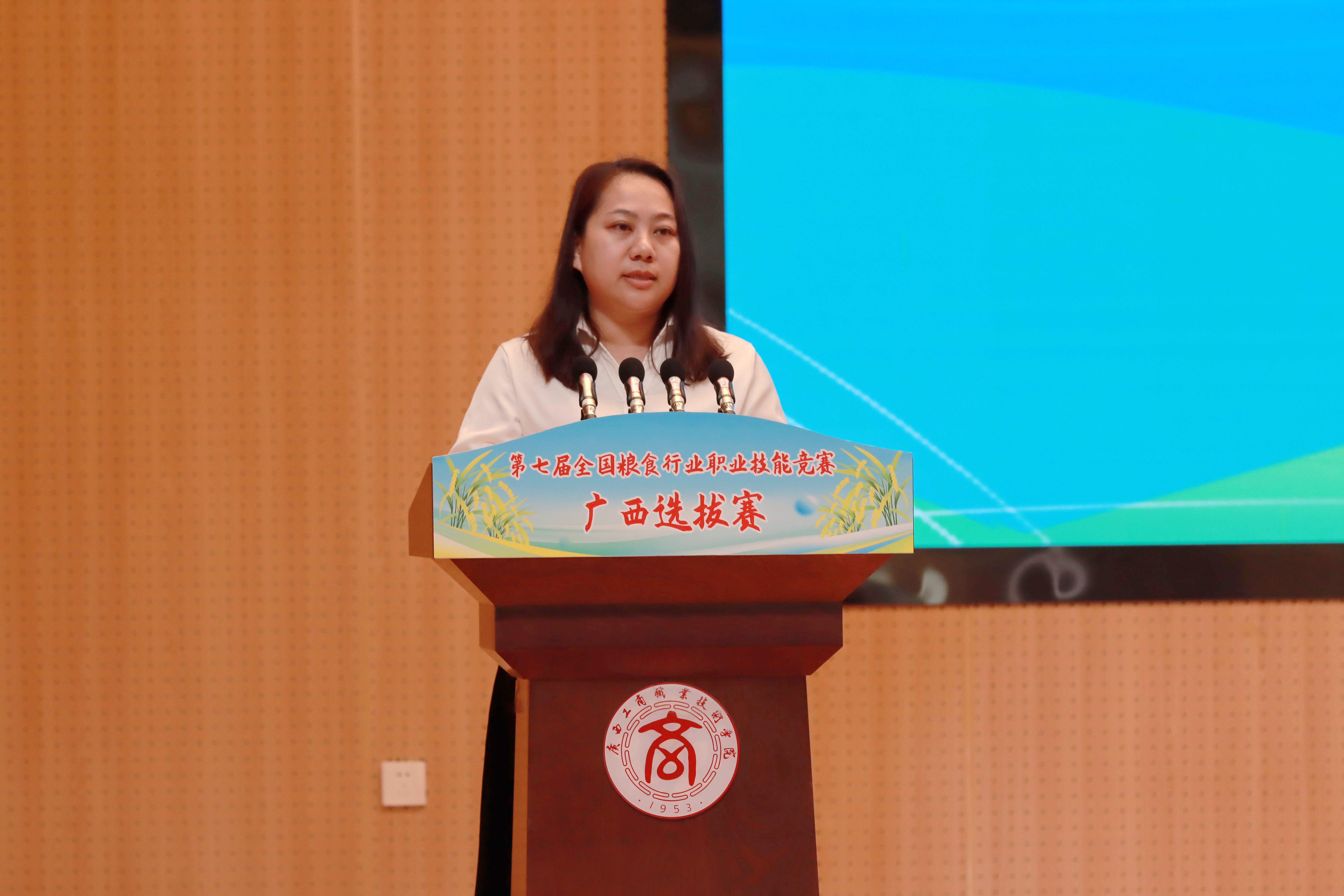 廣西工商職業(yè)技術(shù)學(xué)院副校長闕勇平致歡迎詞,他指出,學(xué)校作為廣西唯一一所開辦糧食專業(yè)的高職院校,緊扣國家糧食安全戰(zhàn)略和廣西糧食行業(yè)、地方經(jīng)濟社會發(fā)展的需要,堅持“以糧立商、以商興糧,把糧做精、把商做強”,全力打造“糧·商”特色鮮明的技術(shù)技能人才培養(yǎng)高地。作為此次選拔賽承辦單位,學(xué)校將以高度的責(zé)任心和嚴謹細致的作風(fēng),全力以赴做好賽事的各項服務(wù)保障,確保競賽各項工作有序、高效、高質(zhì)量開展。