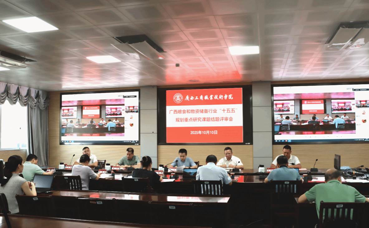 10月10日,自治區(qū)糧食和物資儲(chǔ)備局組織召開(kāi)廣西糧食和物資儲(chǔ)備行業(yè)“十五五”規(guī)劃重點(diǎn)研究課題結(jié)題評(píng)審會(huì),我校協(xié)助承辦此次會(huì)議。會(huì)議旨在對(duì)年度立項(xiàng)的4個(gè)重點(diǎn)研究課題成果進(jìn)行集中評(píng)審驗(yàn)收,確保課題研究質(zhì)量。會(huì)議評(píng)審專家由中國(guó)糧食研究培訓(xùn)中心總經(jīng)濟(jì)師姜明倫、河南工業(yè)大學(xué)教授錢向明、廣西中儲(chǔ)糧倉(cāng)儲(chǔ)設(shè)備科技有限公司總經(jīng)理龍麗娜、廣西工商職業(yè)技術(shù)學(xué)院教務(wù)科研處副處長(zhǎng)張煌強(qiáng)、廣西大學(xué)中國(guó)—東盟經(jīng)濟(jì)學(xué)院經(jīng)濟(jì)系主任郭南蕓組成。各單位課題負(fù)責(zé)人及教務(wù)科研處相關(guān)人員參加會(huì)議,評(píng)審會(huì)由自治區(qū)糧食和物資儲(chǔ)備局規(guī)劃建設(shè)處副處長(zhǎng)鄧哲主持。