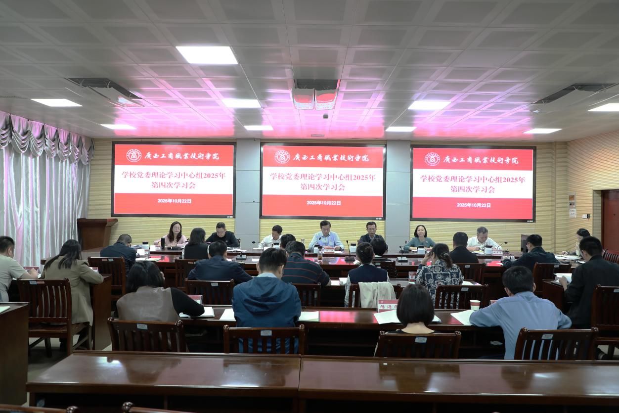 10月22日,學(xué)校召開黨委理論學(xué)習(xí)中心組2025年第四次學(xué)習(xí)會,重點(diǎn)圍繞深入學(xué)習(xí)領(lǐng)會習(xí)近平總書記關(guān)于廣西工作論述的重要要求、深入學(xué)習(xí)領(lǐng)會習(xí)近平總書記關(guān)于鑄牢中華民族共同體意識的重要論述、深入學(xué)習(xí)領(lǐng)會《習(xí)近平談治國理政》第五卷等開展學(xué)習(xí)研討。學(xué)校黨委書記李維主持會議。