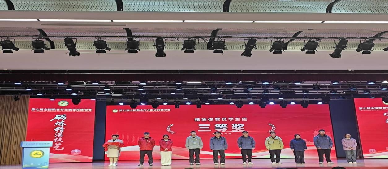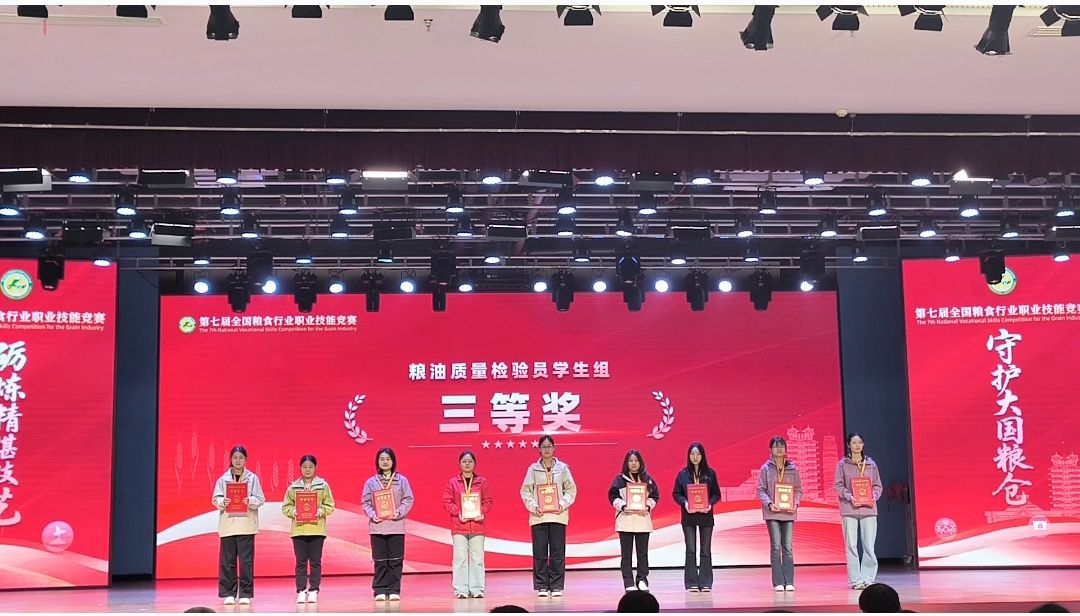 11月6日,第七屆全國(guó)糧食行業(yè)職業(yè)技能競(jìng)賽圓滿落幕,我校參賽學(xué)生石又文、王瓊銳、馬海雯憑借扎實(shí)的專業(yè)功底、精湛的實(shí)操技能與頑強(qiáng)的抗壓能力,歷經(jīng)兩天的實(shí)操比拼、理論考核等多輪角逐,最終從來(lái)自全國(guó)30個(gè)?。▍^(qū)、市)34支代表隊(duì)的354名選手中脫穎而出,斬獲(糧油)倉(cāng)儲(chǔ)管理員職業(yè)高職學(xué)生組三等獎(jiǎng)(指導(dǎo)教師:韓蓉、張罡睿)和農(nóng)產(chǎn)品食品檢驗(yàn)員職業(yè)高職學(xué)生組三等獎(jiǎng)(指導(dǎo)教師:李小媚、黃蘇迪),學(xué)校榮獲優(yōu)秀院校獎(jiǎng)。