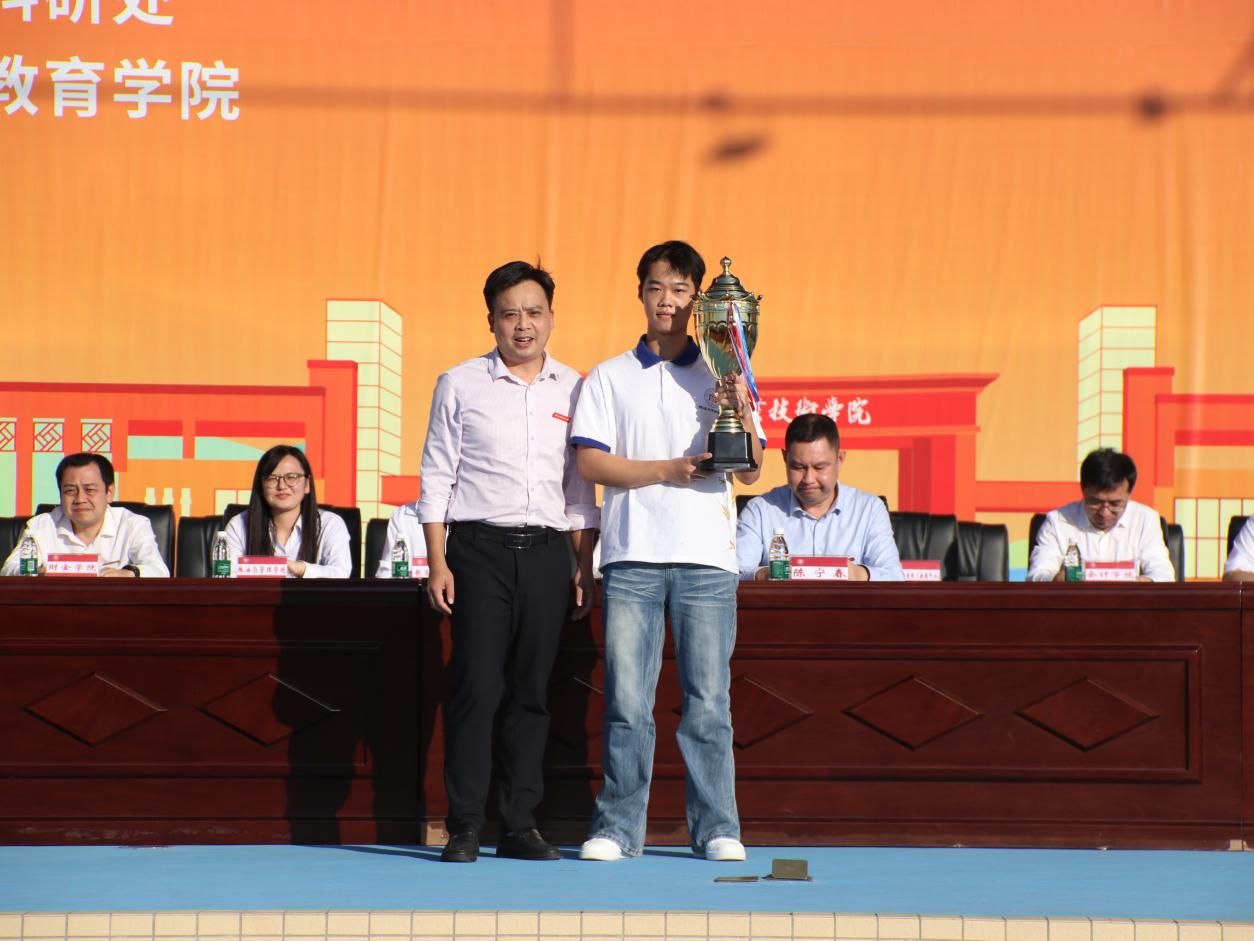 閉幕式上,本屆運(yùn)動(dòng)會(huì)總裁判長(zhǎng)陸長(zhǎng)英宣布本屆運(yùn)動(dòng)會(huì)的比賽成績(jī),糧油與管理學(xué)院榮獲獎(jiǎng)牌榜第一名,會(huì)計(jì)學(xué)院榮獲獎(jiǎng)牌榜第二名,經(jīng)貿(mào)與康旅學(xué)院榮獲獎(jiǎng)牌榜第三名,黨委宣傳部、黨委學(xué)生工作部、教務(wù)科研處相關(guān)負(fù)責(zé)人為獲獎(jiǎng)單位頒獎(jiǎng)。