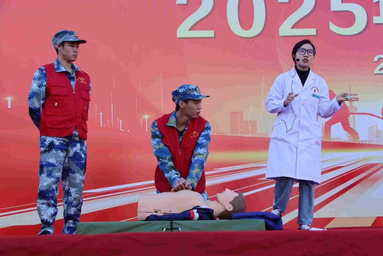 疏散演練后,現(xiàn)場開展了一系列豐富實用的安全主題活動,組織了校園防暴演練,并特別邀請消防宣傳員,為學校師生講解消防器材的使用方法、火災的危險性、防火的應對與逃生自救等知識。并現(xiàn)場示范使用滅火器的使用方法,在實操體驗中,通過讓學生自己體驗滅火器的使用方式,使其掌握正確的滅火方法和滅火技巧。組織滅火器規(guī)范使用實操演練錘煉技能,增設消防模擬逃生屋沉浸式體驗強化感受。醫(yī)護人員現(xiàn)場為大家科普相關急救知識,強調(diào)急救“黃金四分鐘”的重要性,現(xiàn)場模擬心肺復蘇操作演示。