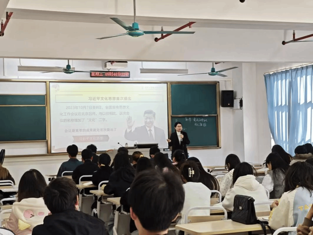 課堂上,授課教師梁小梅以“為什么要建設(shè)中國(guó)特色社會(huì)主義文化”作為問題導(dǎo)向,引導(dǎo)學(xué)生思考建設(shè)社會(huì)主義文化強(qiáng)國(guó)的必要性。她圍繞“文化是國(guó)家民族的靈魂”“文化繁榮興盛是實(shí)現(xiàn)中華民族偉大復(fù)興的必然要求”等核心要點(diǎn),結(jié)合文化自信、人民精神文化需要等現(xiàn)實(shí)維度,用案例與理論相結(jié)合的方式,層層深入,系統(tǒng)講述了中國(guó)特色社會(huì)主義文化建設(shè)的時(shí)代價(jià)值。授課活動(dòng)中梁老師還結(jié)合青年關(guān)注的案例,將理論要點(diǎn)轉(zhuǎn)化為生動(dòng)的現(xiàn)實(shí)思考,課堂活動(dòng)中學(xué)生積極參與。