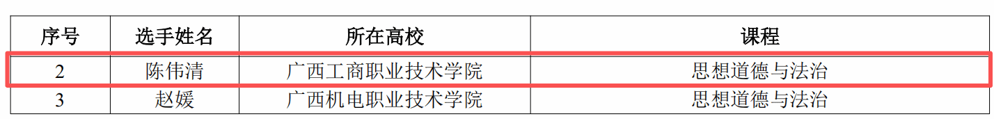 近日,廣西壯族自治區(qū)教育廳公布了2025年全區(qū)高校思政課教師教學基本功比賽獲獎名單,我校參賽教師從全區(qū)249名教師中脫穎而出,取得了優(yōu)異的成績。其中,馬克思主義學院教師陳偉清榮獲高職高專組特等獎,羅氰獻榮獲高職高專組一等獎,陸禮娟榮獲高職高專組二等獎,實現(xiàn)了學校在該項賽事中的歷史性突破。