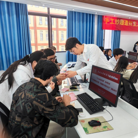 在“財智手工探趣”中,國際學生通過認識人民幣、趣味練功券折紙,既提升中文認知能力,又在手工實踐中體會會計工作的嚴謹性與中國傳統(tǒng)手工藝術的魅力,間接了解糧食貿(mào)易背后的金融文化邏輯。