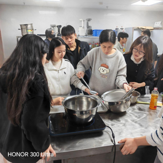 “糧油美味探索”研學以糧食文化與非遺傳承融合為方向,以廣西特色糧油為核心原料,聚焦廣西區(qū)級非物質文化遺產(chǎn)——卷(筒)粉制作技藝。在專業(yè)老師的指導下,國際學生全程參與卷筒粉的制作:從篩選優(yōu)質稻米粉,到調(diào)配米漿、掌握蒸制火候,再到搭配以本地糧油為基底的餡料,一步步體驗從糧油原料到非遺美食的轉化過程,也進一步深入了解卷筒粉的非遺文化價值:這一技藝流傳于廣西數(shù)百年,是廣西各族人民將糧食資源轉化為特色美食的智慧結晶,其制作工藝蘊含著“糧盡其用”的飲食哲學,更是廣西多民族文化交融的見證。國際學生親手品嘗自己制作的卷筒粉,在鮮香口感中領略廣西非遺美食的獨特魅力,加深對糧食價值與文化傳承的雙重理解。國際學生紛紛暢談對中國糧食文化的新認知,不少學生表示,通過卷筒粉制作體驗,不僅學會了一項實用技能,更讀懂了中國“尊重糧食、傳承文化”的價值理念,糧食安全與非遺保護的重要性在跨文化交流中深入人心。