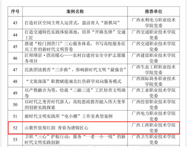 此次案例入選,是自治區(qū)黨委教育工委對我校新時代文明實踐工作成效的充分認可,也是對學校思政教育創(chuàng)新探索的有力激勵。下一步,學校將以此為契機,持續(xù)深化文明實踐陣地建設,不斷豐富“山歌 +”育人內(nèi)涵與形式,著力打造可復制、可借鑒、可推廣的高校思政教育創(chuàng)新示范樣本,為培養(yǎng)擔當民族復興大任的時代新人、服務地方經(jīng)濟社會高質(zhì)量發(fā)展貢獻更大力量。