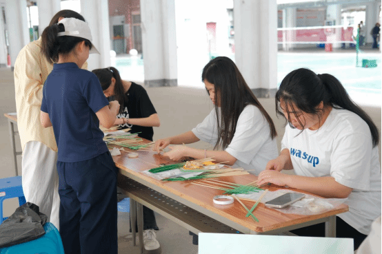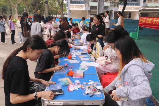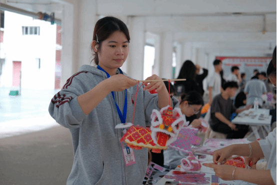 活動(dòng)開(kāi)展了非遺竹編制作、漆扇繪制、香囊制作、手繪團(tuán)扇、折扇繪畫(huà)、點(diǎn)茶活動(dòng)、壯鄉(xiāng)非遺繡球手作等活動(dòng)。隨著下課鈴聲響起,三個(gè)校區(qū)的活動(dòng)現(xiàn)場(chǎng)逐漸熱鬧起來(lái)。武鳴校區(qū)“一站式”學(xué)生社區(qū)、A7、A11架空層,鵬飛校區(qū)3棟架空層,中堯校區(qū)風(fēng)雨球場(chǎng)內(nèi)人頭攢動(dòng),由各學(xué)生社團(tuán)精心布置的體驗(yàn)攤位錯(cuò)落有致,志愿者們熱情洋溢。各活動(dòng)得到了廣大師生的積極響應(yīng)與熱情參與。在活動(dòng)開(kāi)展期間,各板塊活動(dòng)現(xiàn)場(chǎng)始終保持著較高的參與度,部分熱門項(xiàng)目前排起了長(zhǎng)隊(duì),同學(xué)們?cè)趧?dòng)手實(shí)踐中感受傳統(tǒng)手工藝的魅力與趣味。