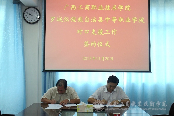 2015年11月20日上午,羅城仫佬族自治縣中等職業(yè)學(xué)校羅智校長(zhǎng)一行四人到訪我院,就與我院簽訂對(duì)口支援工作協(xié)議事宜進(jìn)行了研討并簽訂了對(duì)口支援協(xié)議,明確了今后雙方開(kāi)展對(duì)口支援工作的方向和任務(wù)。