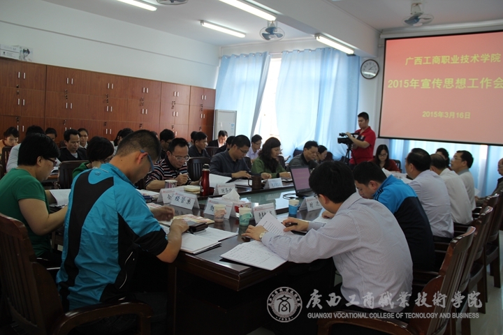 孫德江部長對2014年宣傳思想工作進(jìn)行了總結(jié),并對2015年宣傳思想工作進(jìn)行安排和部署。招生工作處時進(jìn)主任講解學(xué)院2015年招生宣傳工作安排。參會人員還對今年的宣傳思想和招生宣傳工作提出很多寶貴的意見。
