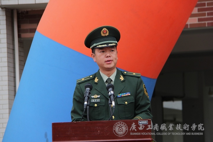 表演結(jié)束后,武警廣西總隊(duì)直屬支隊(duì)政治處副主任楊和奎在臺(tái)上講話。大會(huì)最后,由學(xué)院黨委書記覃武云講話,他向關(guān)心和支持我院軍訓(xùn)工作并在軍訓(xùn)中付出辛勤勞動(dòng)的武警廣西總隊(duì)直屬支隊(duì)的官兵們表示衷心的感謝。希望同學(xué)們把從武警官兵身上學(xué)到的好思想、好精神、好作風(fēng),化為成長的動(dòng)力,刻苦學(xué)習(xí),積極進(jìn)取,用青春的智慧與激情在大工商書寫精彩人生。