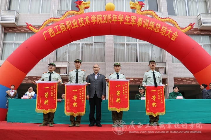 2015年12月15日上午9時(shí)30分,我院在校本部田徑運(yùn)動(dòng)場隆重舉辦2015年軍事訓(xùn)練總結(jié)大會(huì)。學(xué)院黨委書記覃武云,武警廣西總隊(duì)直屬支隊(duì)政治處副主任楊和奎等領(lǐng)導(dǎo)、教務(wù)科研處、后勤管理處、學(xué)院黨委學(xué)工部相關(guān)負(fù)責(zé)人、來自武警廣西總隊(duì)直屬支隊(duì)的軍訓(xùn)教官、2015級(jí)新生班級(jí)各班班主任和2015級(jí)全體新生等參加了此次大會(huì),大會(huì)由付光部長主持。