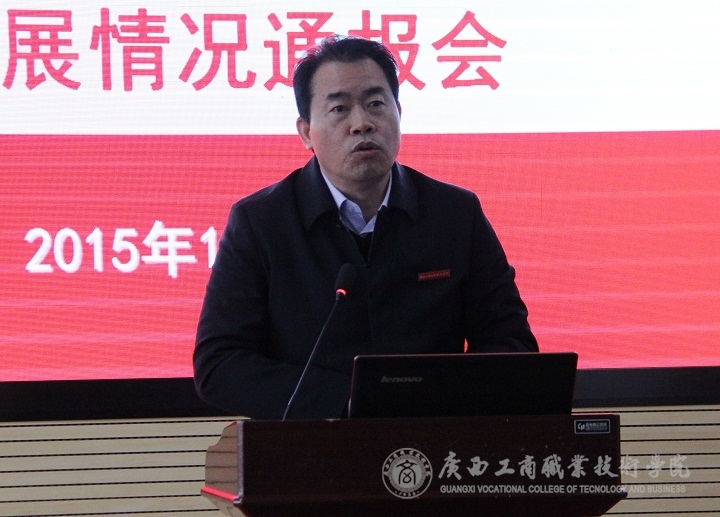 2015年12月16日下午2點(diǎn)40分我院在2119教室召開(kāi)“三嚴(yán)三實(shí)”專題教育進(jìn)展情況通報(bào)會(huì)。學(xué)院黨委書(shū)記覃武云、學(xué)院院長(zhǎng)陳杰、副廳級(jí)調(diào)研員黃永蓬和學(xué)院全體在職黨員、學(xué)院副高職稱及以上教師、學(xué)院教代會(huì)代表等參加了會(huì)議。會(huì)議由陳杰院長(zhǎng)主持,覃武云書(shū)記做專題報(bào)告。