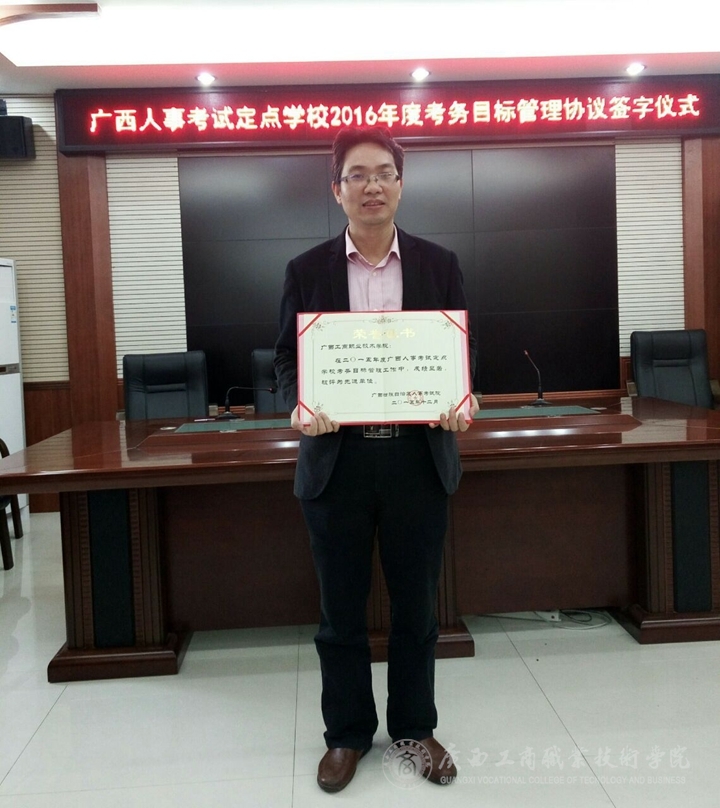 12月24日,從廣西區(qū)人事考試院傳來喜訊,我院在2015年度全區(qū)人事考試定點(diǎn)學(xué)校考務(wù)目標(biāo)管理工作中,成績(jī)突出,被評(píng)為先進(jìn)工作單位。