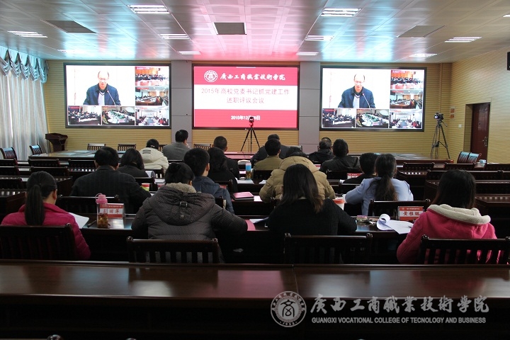 按照上級部門的部署,2015年12月20-21日,我院派出了學(xué)院領(lǐng)導(dǎo)、黨務(wù)部門負(fù)責(zé)人及教職工黨員代表等20人作為評議人員在分會場我院本部教學(xué)樓2119視頻會議室參加我區(qū)2015年高校黨委書記抓黨建工作述職評議會議,對全區(qū)46所副廳級以上建制高校的黨委書記述職進(jìn)行評分。